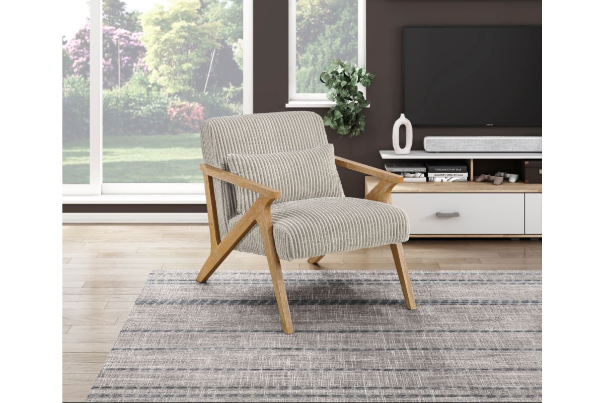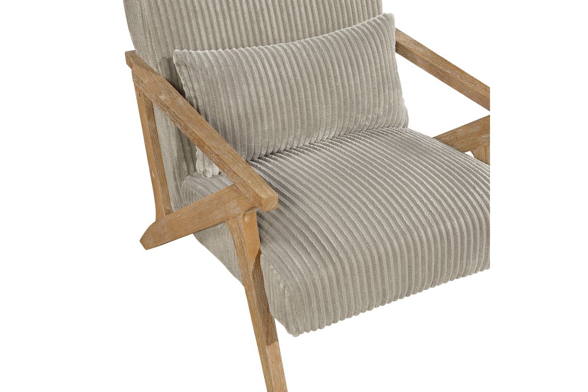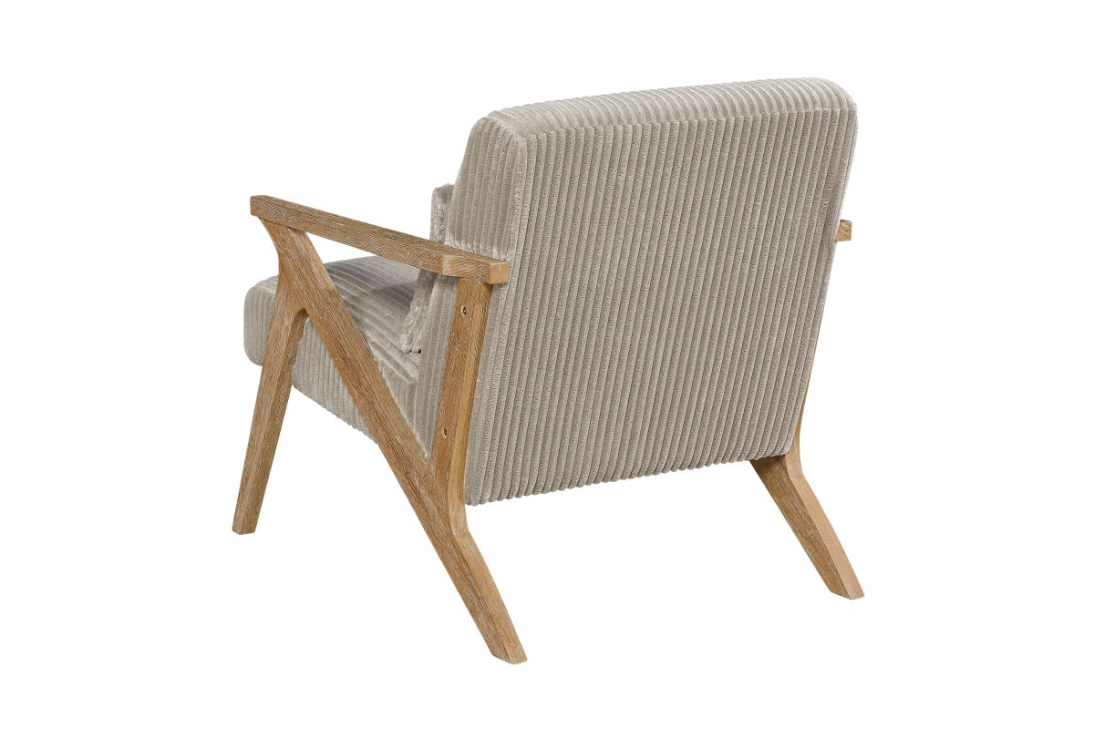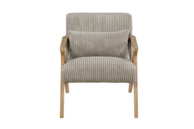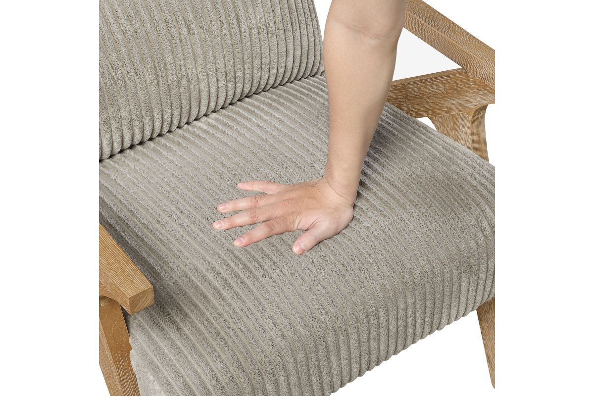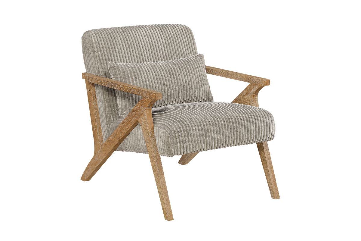 Bring inviting texture and relaxed modern style to your home with this plush corduroy accent chair. Designed with a gently distressed natural wood frame and signature mid-century inspired angles, this chair blends casual comfort with timeless character. The plush ribbed corduroy upholstery adds a warm, tactile feel, while the included lumbar pillow provides extra support for reading, lounging, or unwinding at the end of the day. Whether placed in a living room, bedroom corner, or cozy media space, this chair offers the perfect balance of softness, style, and everyday comfort. Its clean silhouette, sculpted arms, and artisan-touched wood grain make it a versatile statement piece that enhances both modern and transitional interiors.