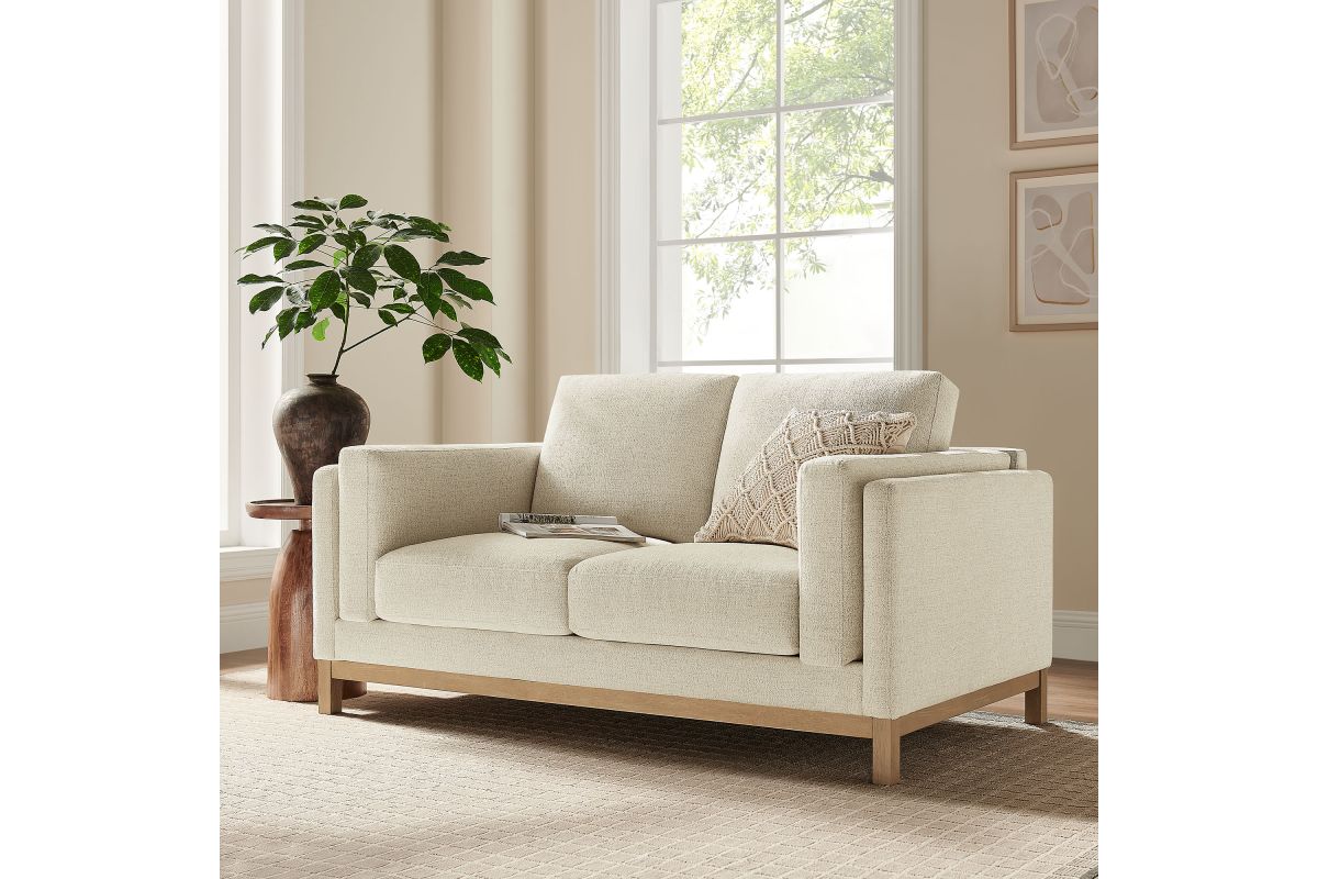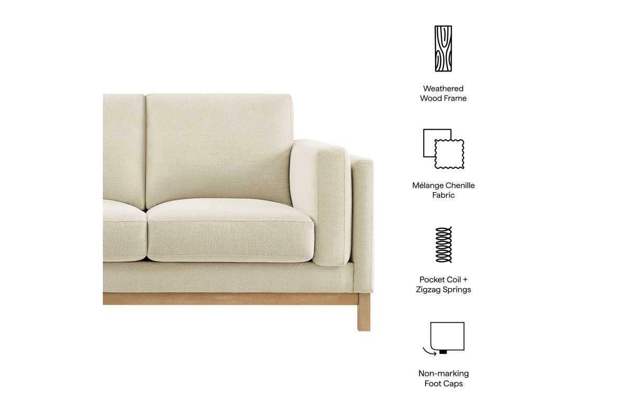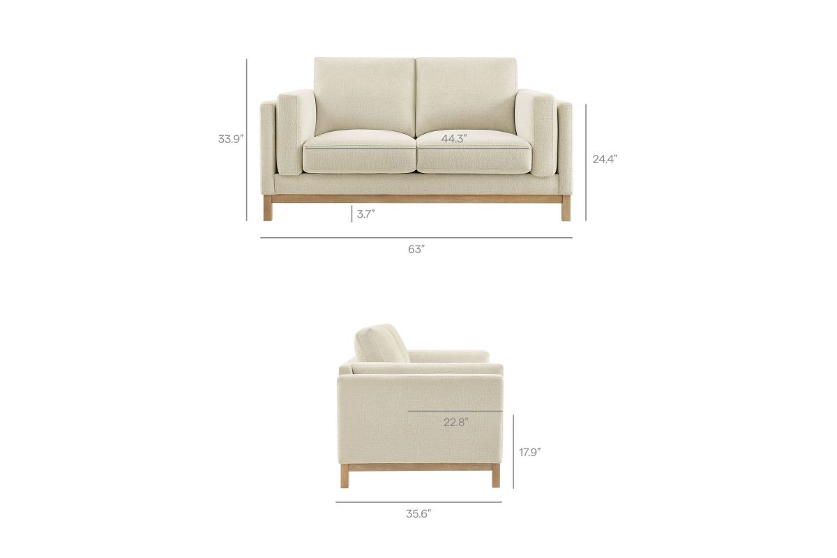 Refined lines and enduring design shape the Roscoe 63-Inch Loveseat, a tailored take on American-traditional style. Upholstered in soft and subtle Mélange Chenille fabric, this cozy loveseat features a deep, generous seat with plush back and seat cushions, made of high resiliency foam, further supported by spring pocket coils and sinuous springs for lasting comfort. The low, streamlined profile sits atop a kiln-dried weathered wood frame with integrated legs and non-marking foot caps for added stability and floor protection. A versatile comfortable loveseat for modern or classic interiors, Roscoe is the ideal deep seat couch—great as an office loveseat, loveseat for bedroom, or couch for small spaces.