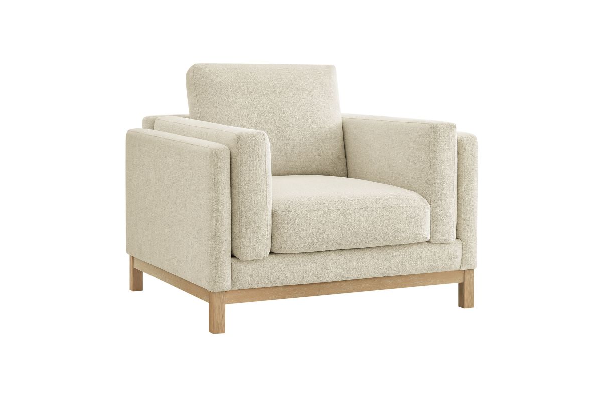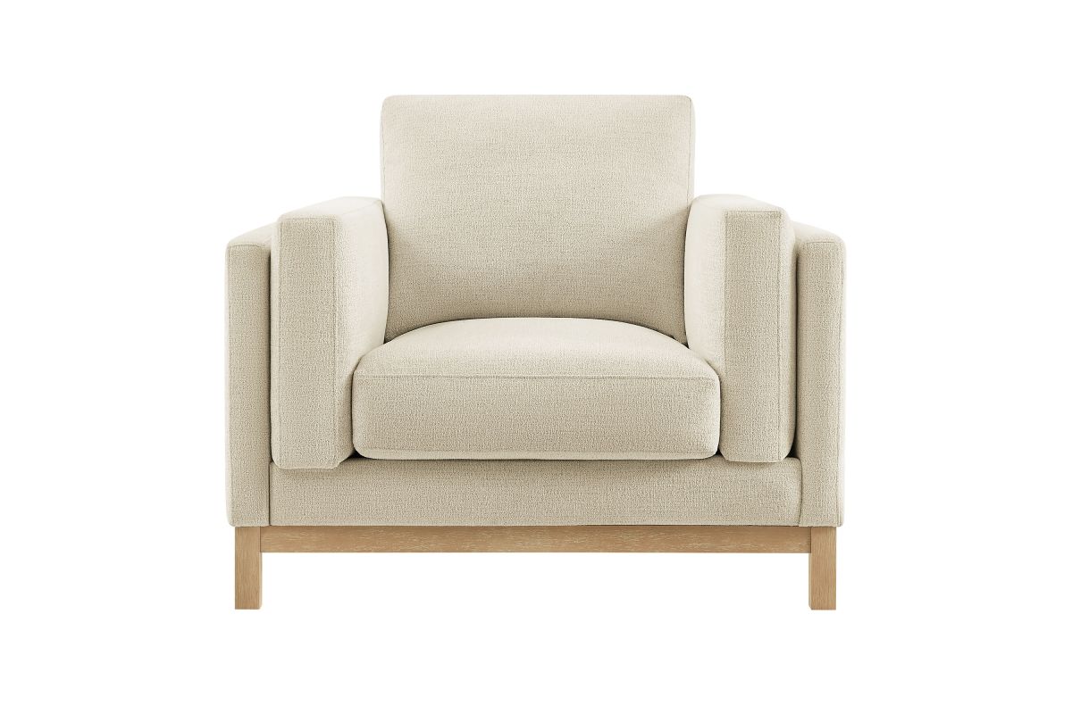 Refined lines and enduring design shape the Roscoe Armchair, a tailored take on American-traditional style. Upholstered in soft and subtle Mélange Chenille fabric, this accent chair with arms features a deep, wide seat with plush back and seat cushions, made of high resiliency foam, further supported by spring pocket coils and sinuous springs for lasting comfort. The low, streamlined profile sits atop a kiln-dried weathered wood frame with integrated legs and non-marking foot caps for added stability and floor protection. A versatile comfortable accent chair for modern or classic interiors, Roscoe is great as a lounge chair for bedroom, corner reading chair, or living room accent chair. Weight Capacity: 800 lbs.