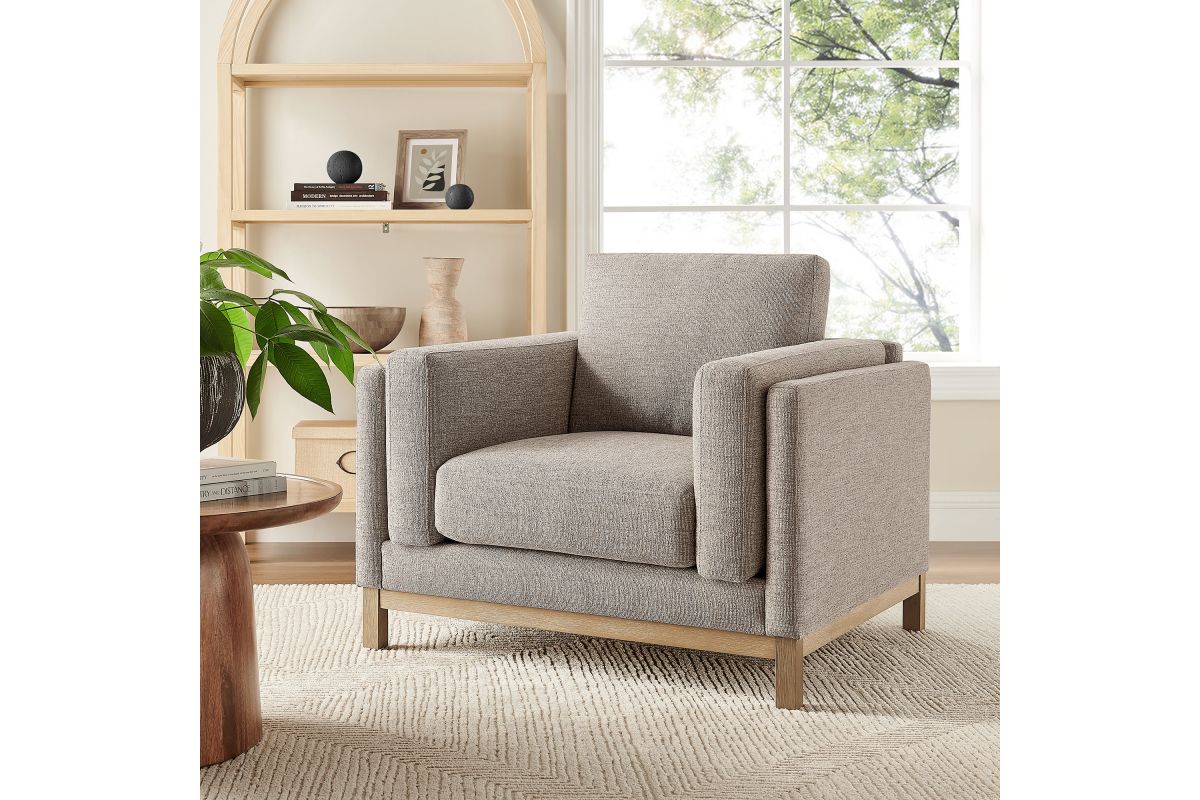 Refined lines and enduring design shape the Roscoe Armchair, a tailored take on American-traditional style. Upholstered in soft and subtle Mélange Chenille fabric, this accent chair with arms features a deep, wide seat with plush back and seat cushions, made of high resiliency foam, further supported by spring pocket coils and sinuous springs for lasting comfort. The low, streamlined profile sits atop a kiln-dried weathered wood frame with integrated legs and non-marking foot caps for added stability and floor protection. A versatile comfortable accent chair for modern or classic interiors, Roscoe is great as a lounge chair for bedroom, corner reading chair, or living room accent chair. Weight Capacity: 800 lbs.