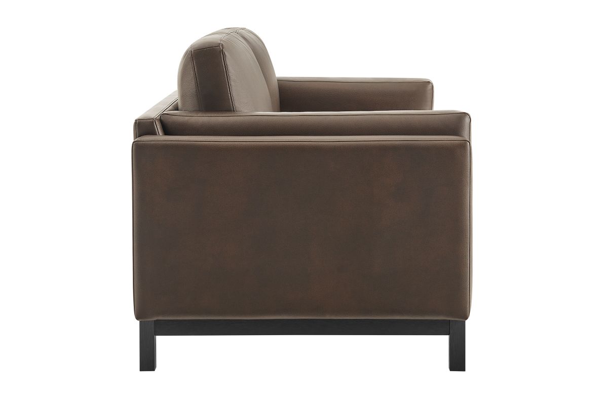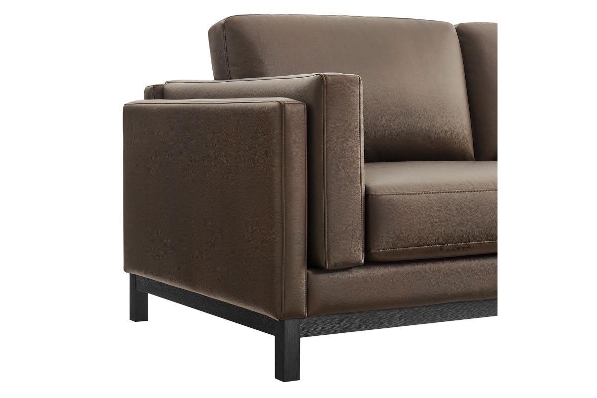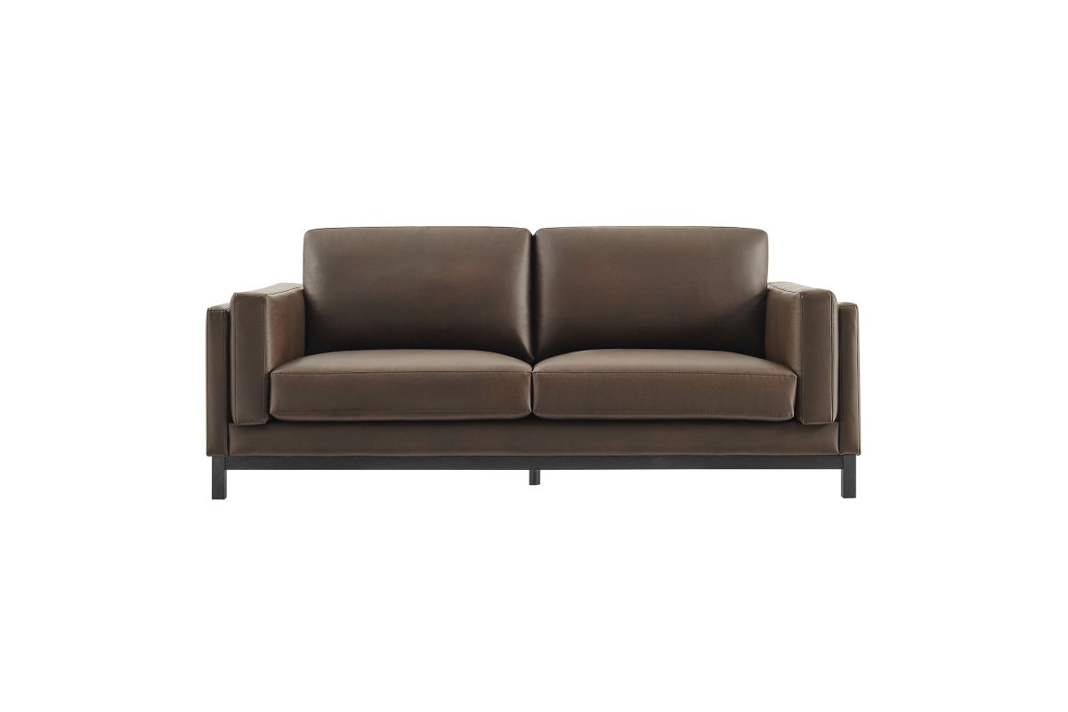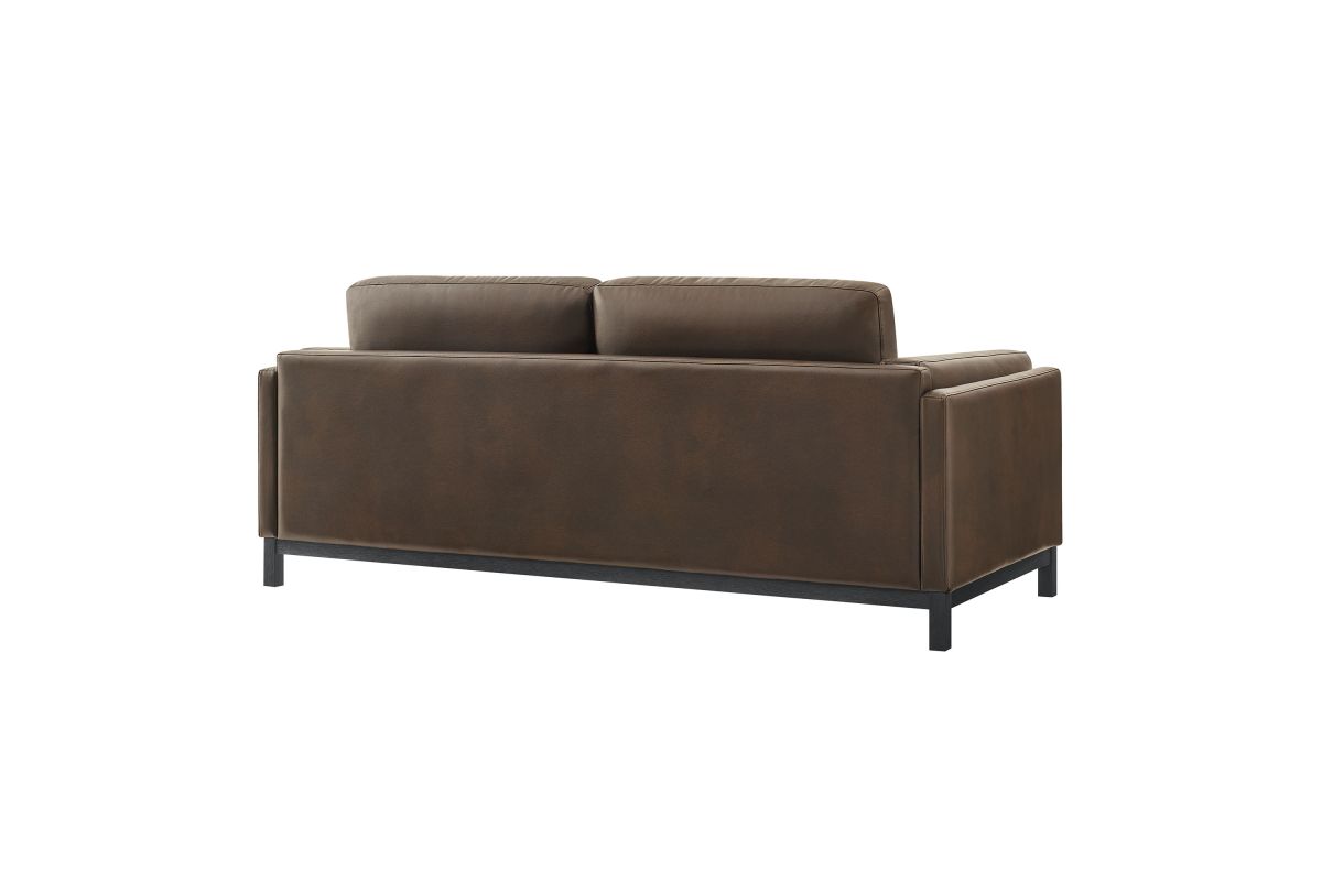 Refined lines and enduring design shape the Roscoe 81-Inch Lounge Sofa, a tailored take on American-traditional style. Upholstered in smooth vegan leather, this square couch features a deep, generous seat with plush back and seat cushions, made of high resiliency foam, further supported by spring pocket coils and sinuous springs for lasting comfort. The low, streamlined profile sits atop a kiln-dried weathered wood frame with integrated legs and non-marking foot caps for added stability and floor protection. A versatile faux leather couch for modern or classic interiors, Roscoe is the ideal deep seat couch—great as an office couch, apartment couch, or lounge couch for bedroom. Weight Capacity: 800 lbs.