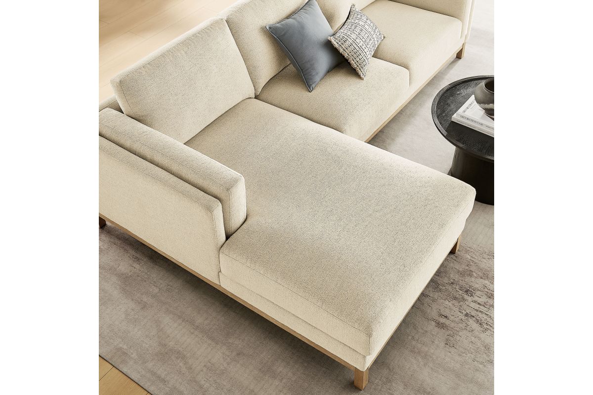 Refined lines and enduring design shape the Roscoe L-shaped Sectional Sofa with Chaise, a tailored take on American-traditional style. This two-piece configuration includes a left-facing chaise and a right-facing sofa, upholstered in soft and subtle Mélange Chenille for a smooth, heathered texture. Designed with plush seat cushions and spring pocket coil + sinuous spring support, this sectional couch offers deep, sink-in comfort with a grounded silhouette. Featuring high resiliency foam, the low-profile frame sits on a kiln-dried weathered wood base with integrated legs and non-marking foot caps for added stability and floor protection. Weight Capacity: 800 lbs per piece.