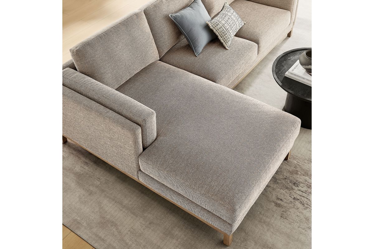 Refined lines and enduring design shape the Roscoe L-shaped Sectional Sofa with Chaise, a tailored take on American-traditional style. This two-piece configuration includes a left-facing chaise and a right-facing sofa, upholstered in soft and subtle Mélange Chenille for a smooth, heathered texture. Designed with plush seat cushions and spring pocket coil + sinuous spring support, this sectional couch offers deep, sink-in comfort with a grounded silhouette. Featuring high resiliency foam, the low-profile frame sits on a kiln-dried weathered wood base with integrated legs and non-marking foot caps for added stability and floor protection. Weight Capacity: 800 lbs per piece.