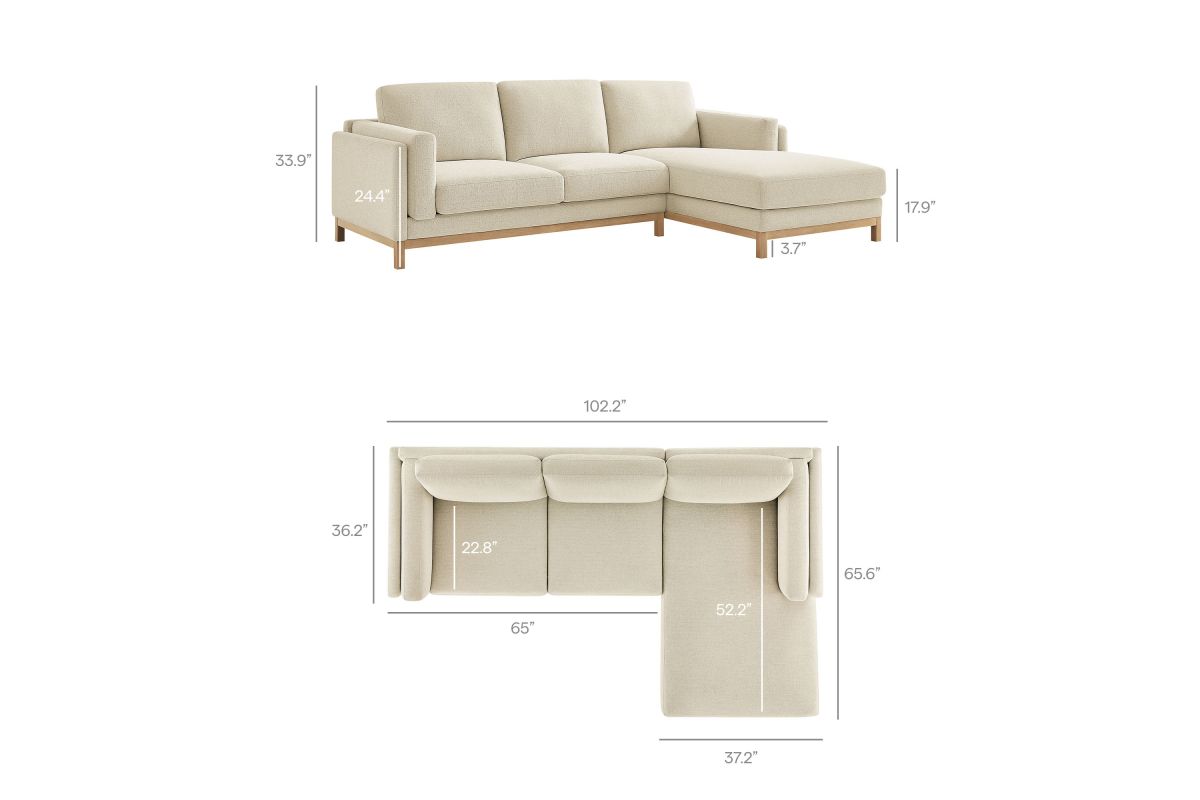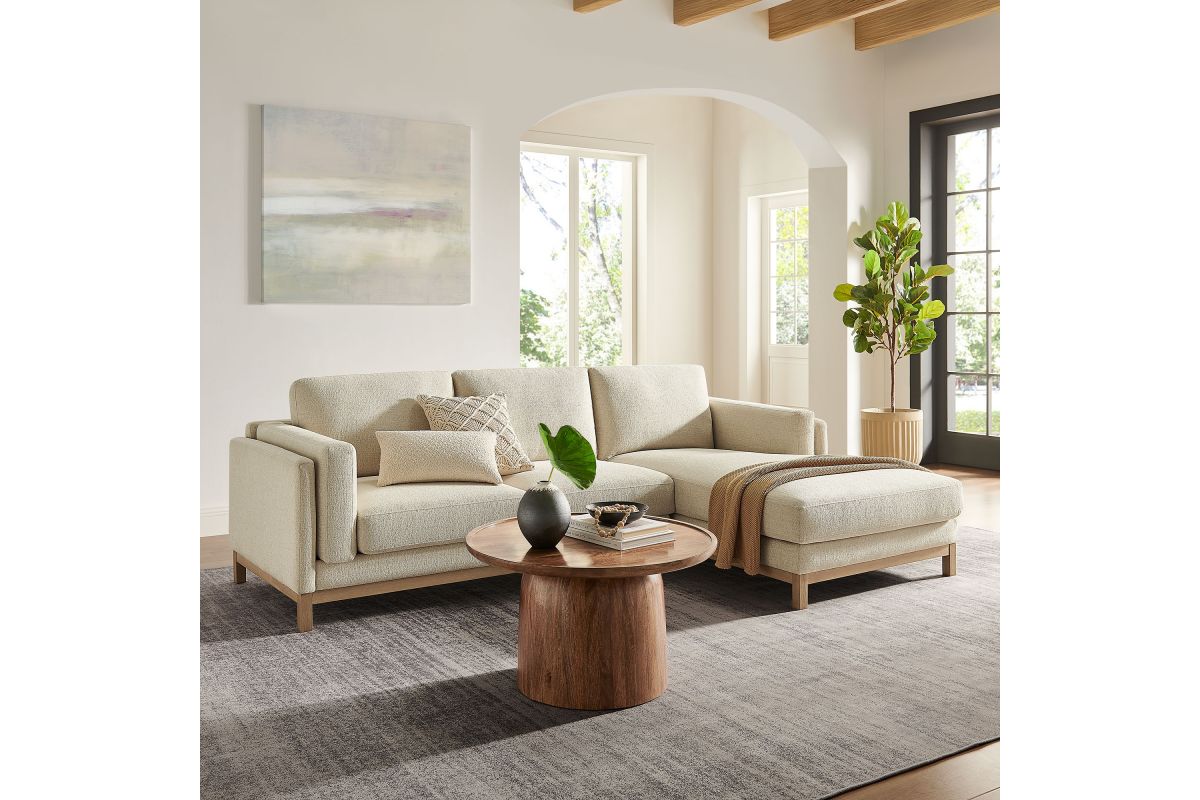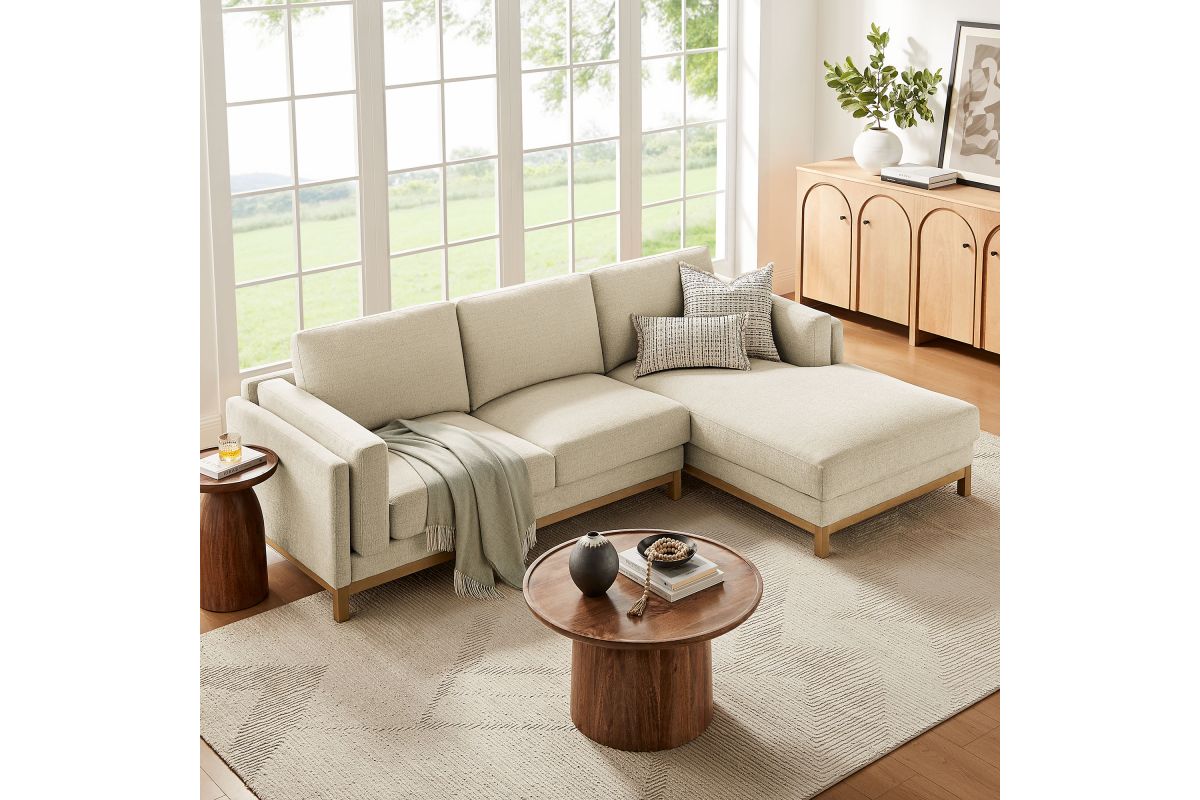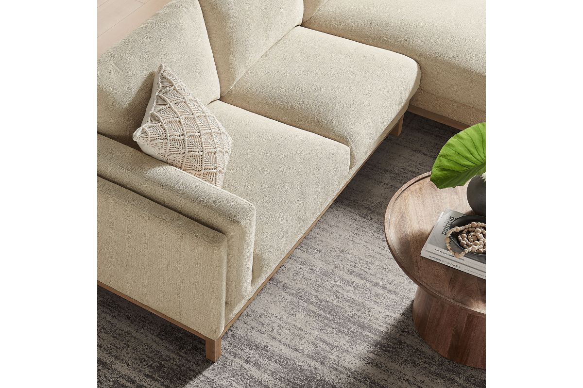 Refined lines and enduring design shape the Roscoe L-shaped Sectional Sofa with Chaise, a tailored take on American-traditional style. This two-piece configuration includes a right-facing chaise and a left-facing sofa, upholstered in soft and subtle Mélange Chenille for a smooth, heathered texture. Designed with plush seat cushions and spring pocket coil + sinuous spring support, this sectional couch offers deep, sink-in comfort with a grounded silhouette. Featuring high resiliency foam, the low-profile frame sits on a kiln-dried weathered wood base with integrated legs and non-marking foot caps for added stability and floor protection. Weight Capacity: 800 lbs per piece.
