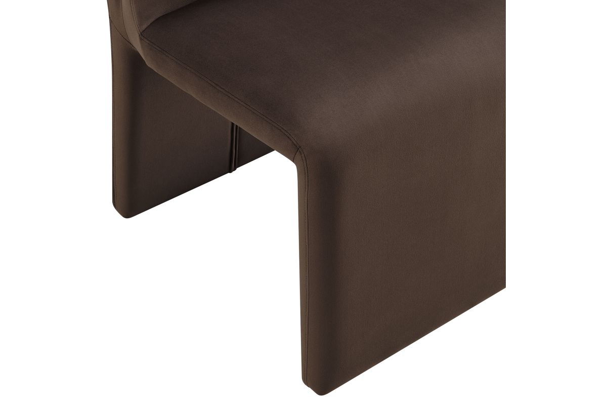 With its smooth curves and continuous form, the Emory Armless Dining Chair brings an elegant, contemporary feel to any space. Wrapped entirely in soft performance velvet fabric, this single slipper dining chair features a tall, gently angled backrest that provides support while maintaining a clean, minimal profile. The padded seat flows into the base with a waterfall edge that adds both comfort and balance. Its armless shape and crisp lines make it easy to style around a dining table or as a padded bedroom chair, or living room accent chair. Built with a sturdy internal wooden frame and finished with non-marking foot pins, Emory arrives fully assembled and supports up to 300 lbs.