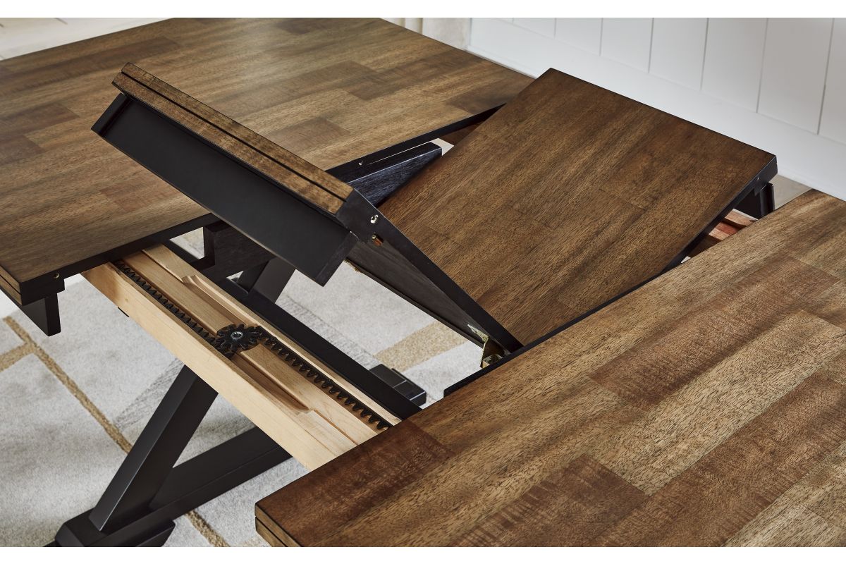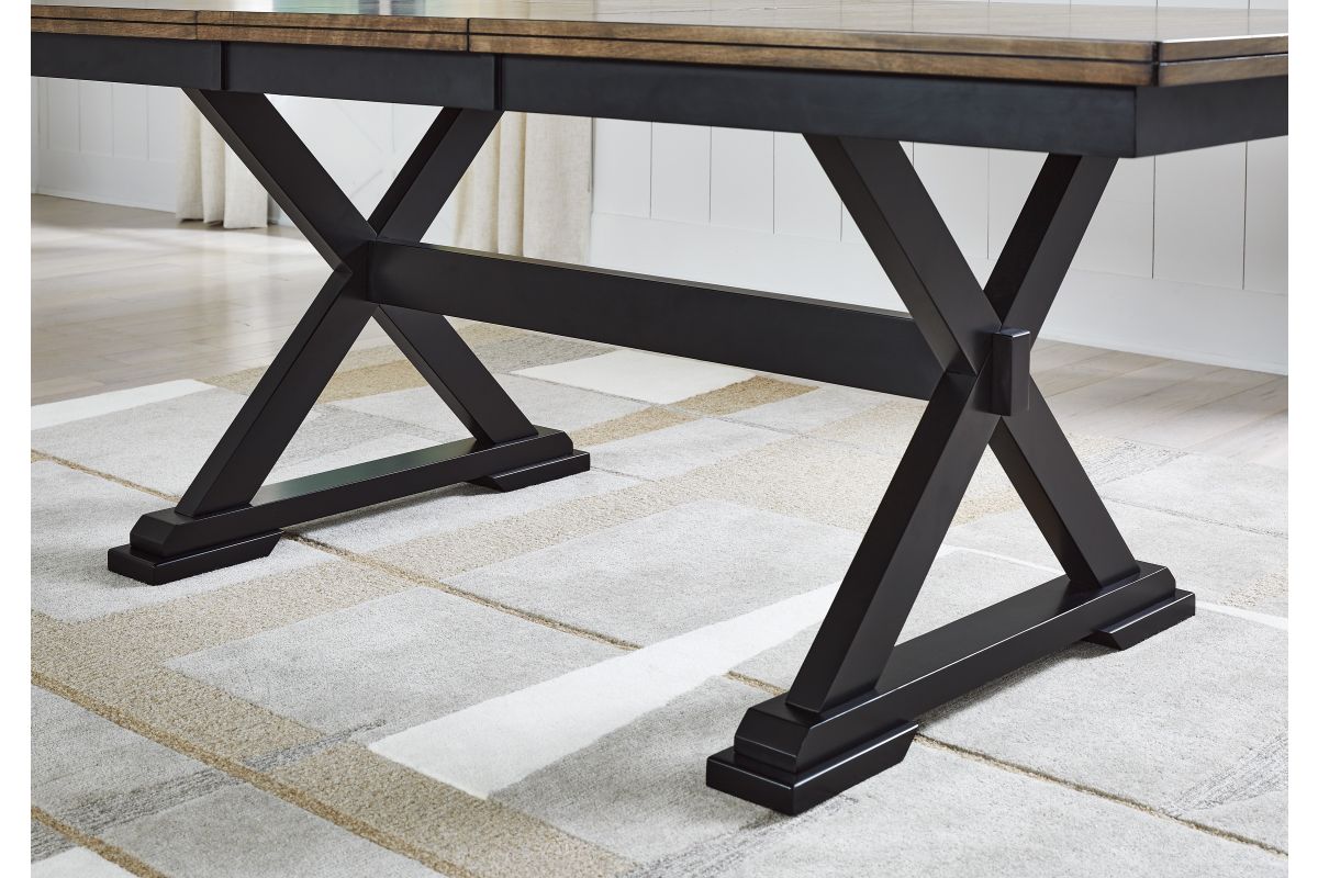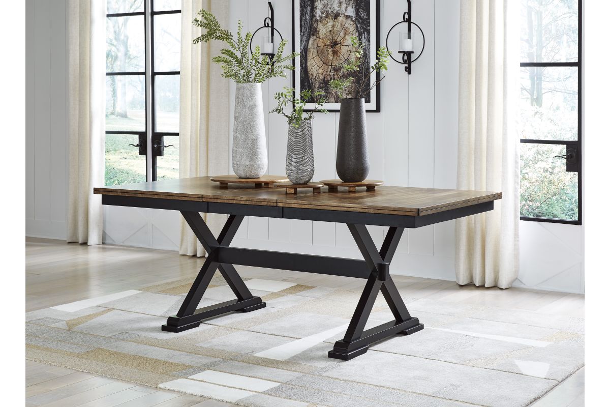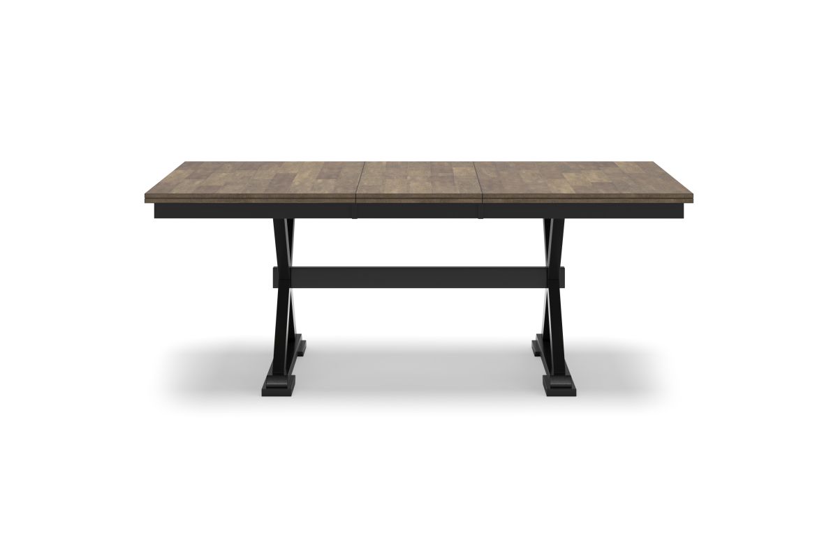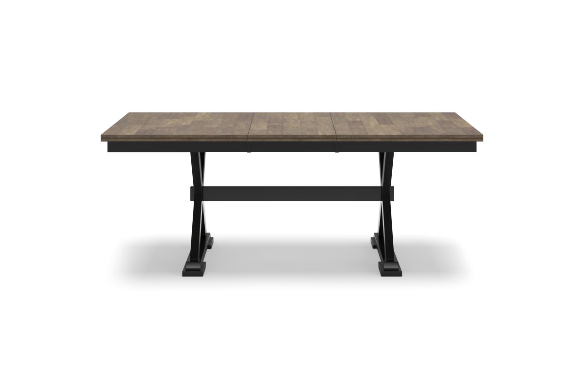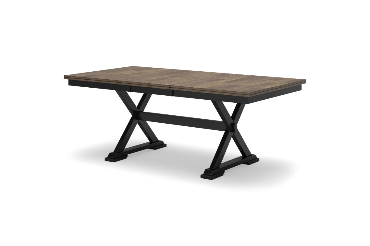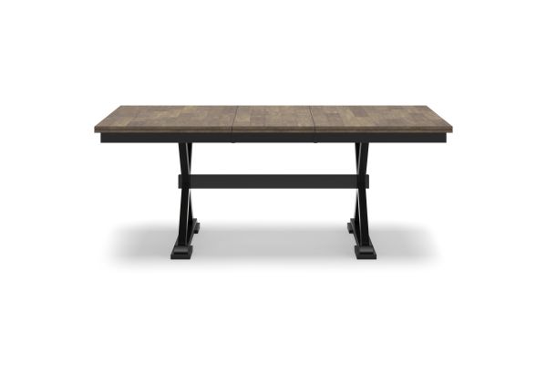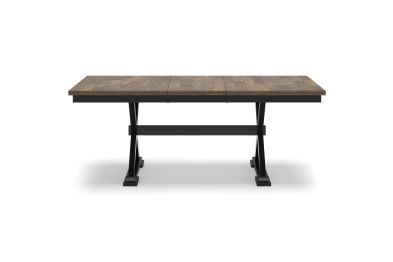 Raise the bar on modern farmhouse style with this dining extension table. Its handsome good looks are accentuated with a two-tone finish and a casual butcher block veneer top. The sturdy silhouette adds a hearty element, whether your style is vintage, country or eclectic. This richly crafted multi-use table extends to seat eight comfortably, serving up charm wherever folks decide to take a seat.