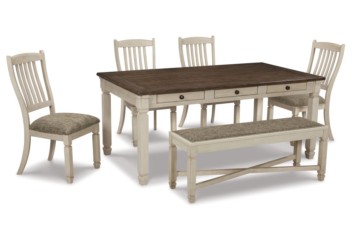 Sorry, the Bolanburg 6-Piece Dining Set with Bench is no longer available. We've left this page up for reference only. Check out the great alternatives on this page or call 248-481-2208 or Chat with a Gardner White Sales Specialist about similar products.