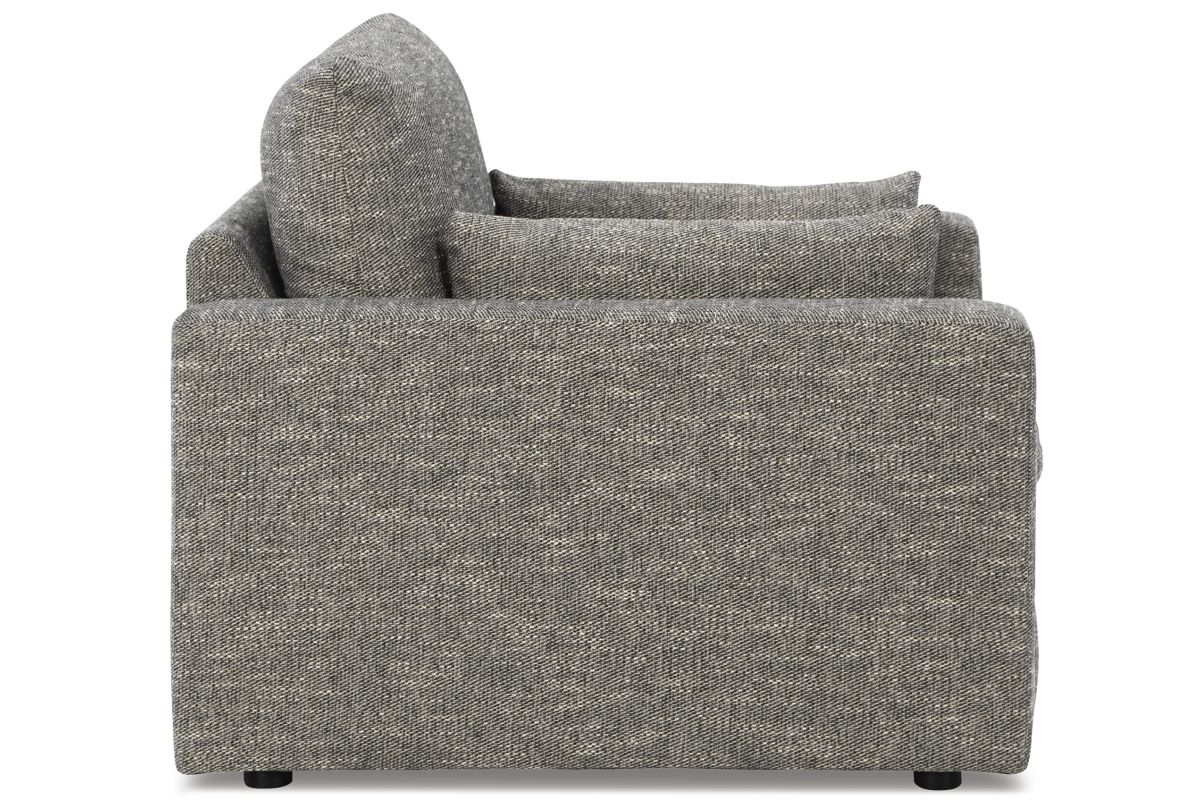 On the days when rest and relaxation seem out of reach, this oversized chair provides a positively plush seating experience. Its feather-fiber blend cushions invite you to float away in cloud-like comfort. Striking granite-hued upholstery and a streamlined frame grant this cozy piece a look well-suited to contemporary spaces.