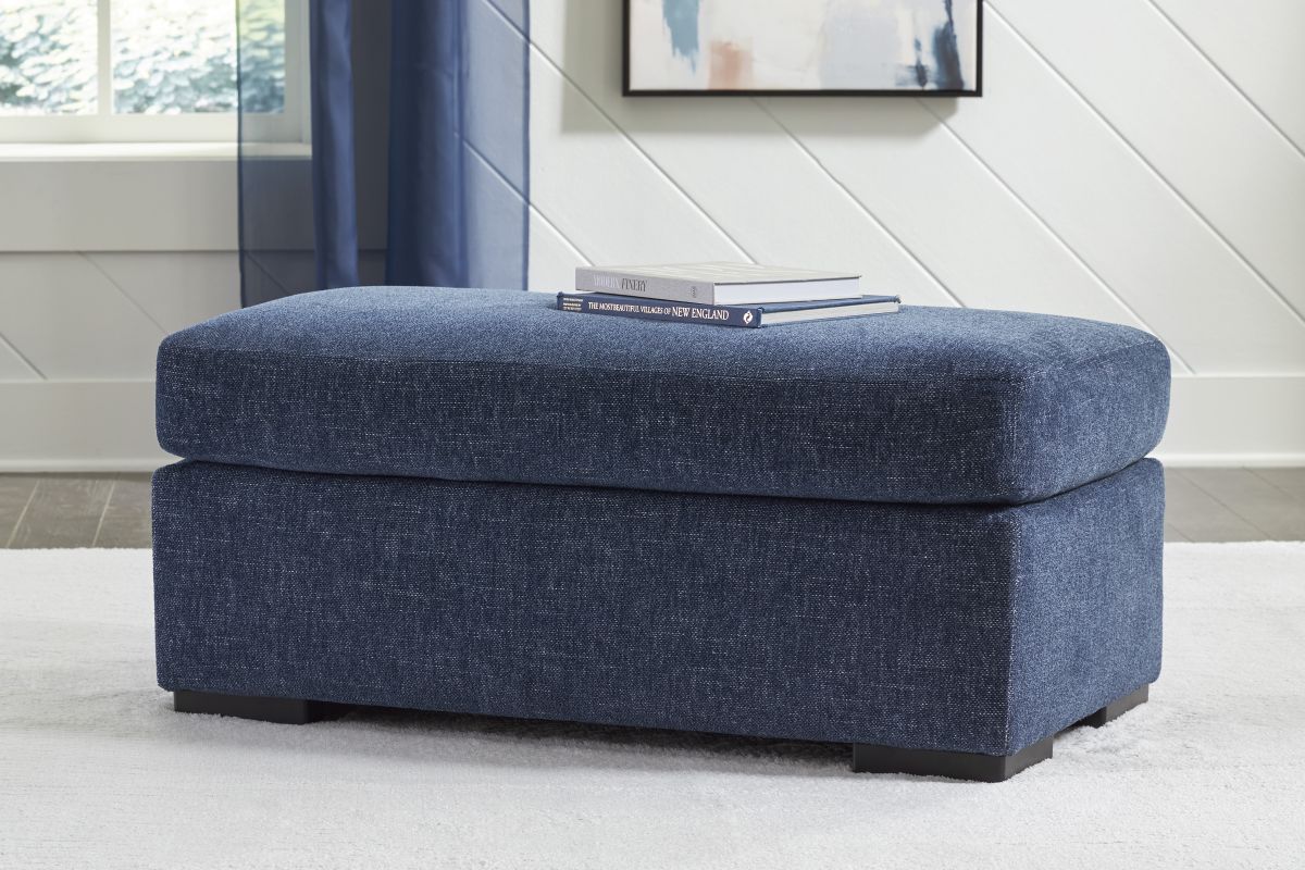 Casual contemporary style, meet carefree lounging. With this ottoman, you don’t need to sweat the small stuff. Thanks to its fresh navy hue, you can stay right on trend when you kick back and relax. Time for a touch-up? Easy-to-clean Next-Gen Nuvella™ fabric makes upkeep a breeze.