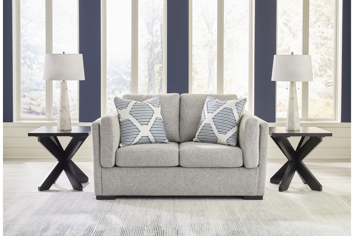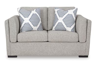 Casual contemporary style, meet carefree lounging. With this loveseat, you don’t need to sweat the small stuff. Thanks to its fresh neutral hue, you can stay right on trend when you kick back and relax. And the arm bolster pillows keep you extra comfy. Time for a touch-up? Machine-washable Next-Gen Nuvella™ covers make upkeep a breeze.