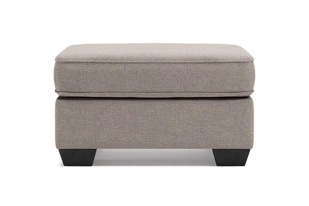 Make your living space that much more livable with this ottoman. Rest assured that its ultra-neutral upholstery with a textural chenille feel goes with anything and everything. Tailored box cushioning and tapered feet lend a clean, contemporary aesthetic. Make it even more enticing by pairing it with the available matching arm chair and reserve yourself the best seat in the house.