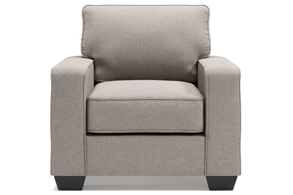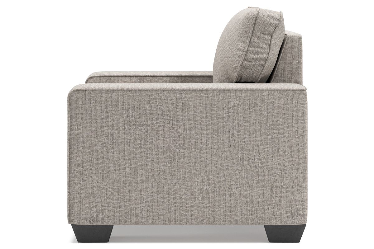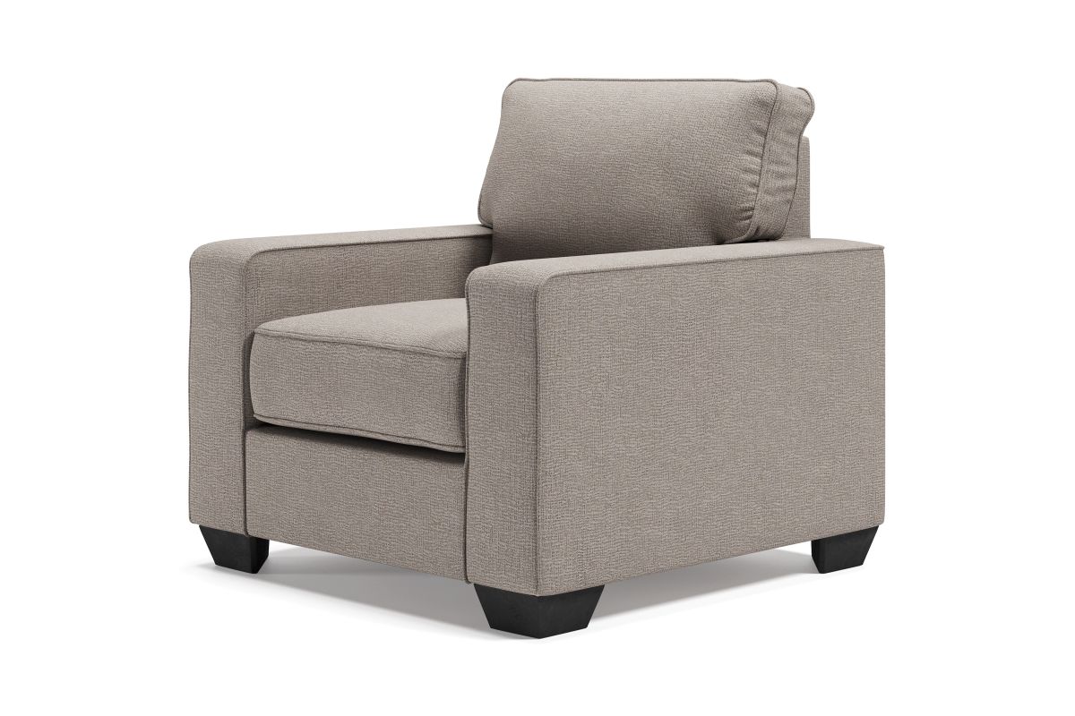 Make your living space that much more livable with this arm chair. Rest assured that its ultra-neutral upholstery with a textural chenille feel goes with anything and everything. Wide track armrests, box cushions and tapered feet lend a clean, contemporary aesthetic. Make it even more enticing by pairing it with the available matching ottoman and reserve yourself the best seat in the house.