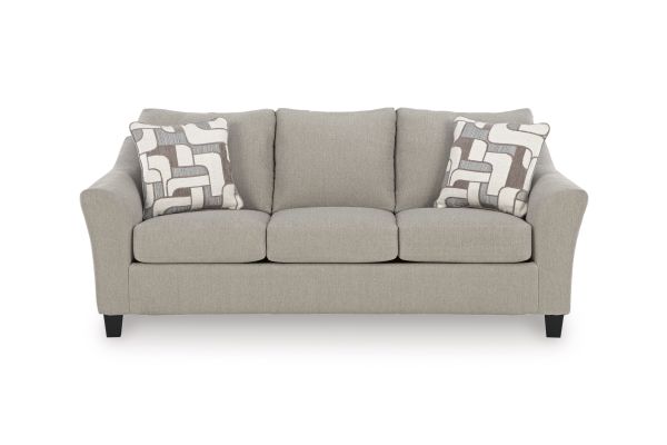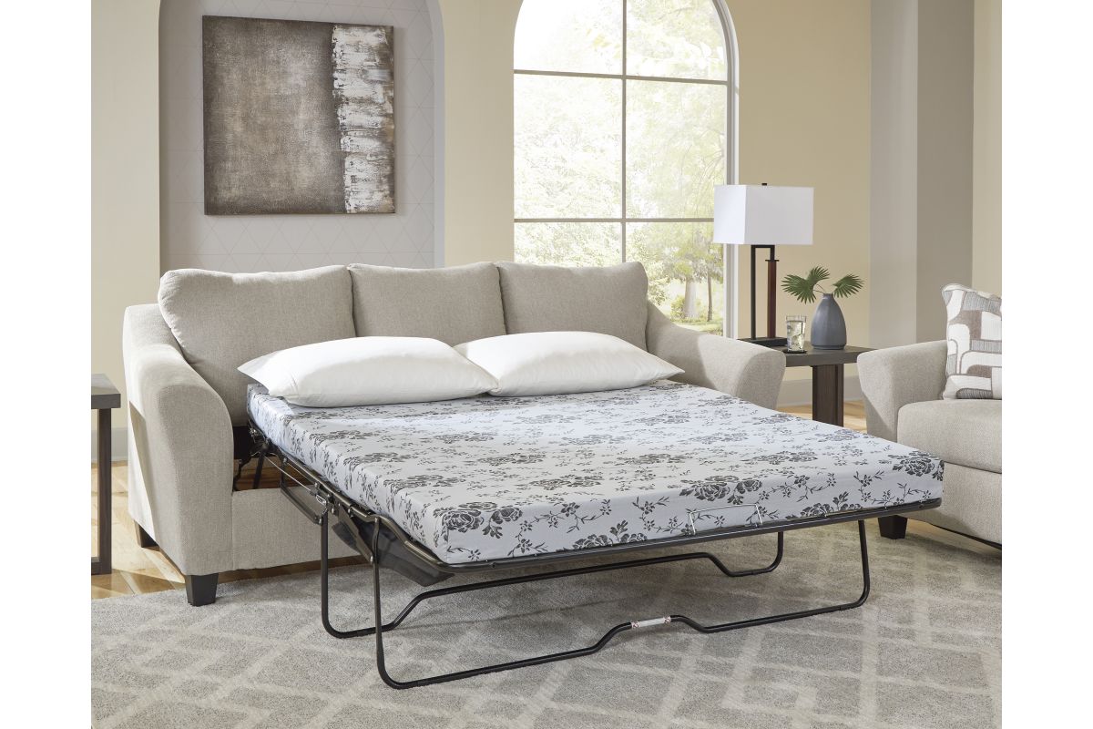 Subtle in color, big on style possibilities. This queen sleeper sofa is a transitional take on everyday comfort. Its soft-to-the-touch upholstery keeps you cozy as you lounge, and the neutral hue is a perfect canvas for adding your own fashionable flair. Hosting guests overnight? It's easy to transform this sofa into a sleeper with the built-in queen mattress.