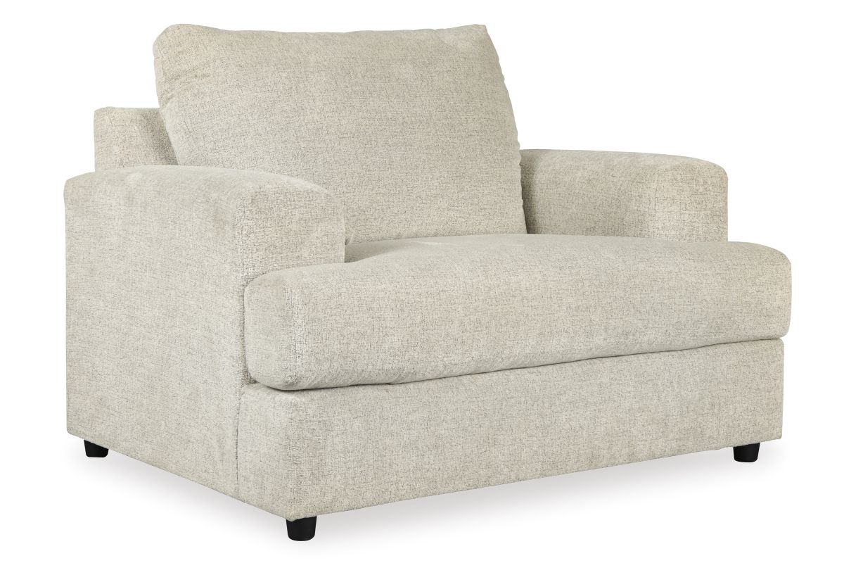 Flaunting a trendsetting silhouette, this oversized chair puts the contemporary in your contemporary home. Its ample seating space gives you elongated plushness for deep relaxation. And the chunky chenille fabric satisfies your need for a piece that feels as good as it looks.