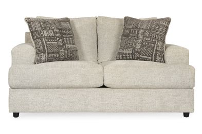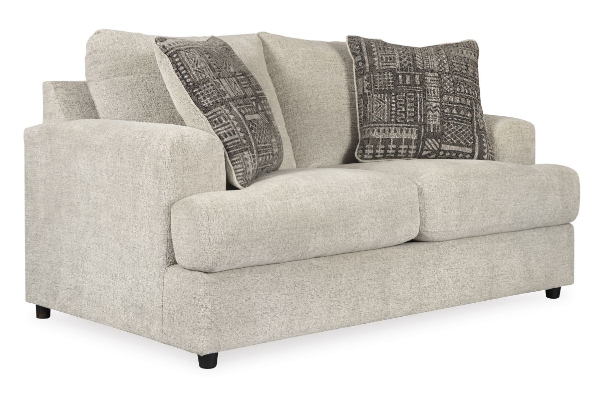 Flaunting a trendsetting silhouette, this loveseat puts the contemporary in your contemporary home. Its “three over two” profile eliminates the center seat cushion, giving you elongated plushness and deep seating. And the chunky chenille fabric satisfies your need for a piece that feels as good as it looks. Soft jacquard chenille throw pillows add a splash of geometric pattern and color contrast.