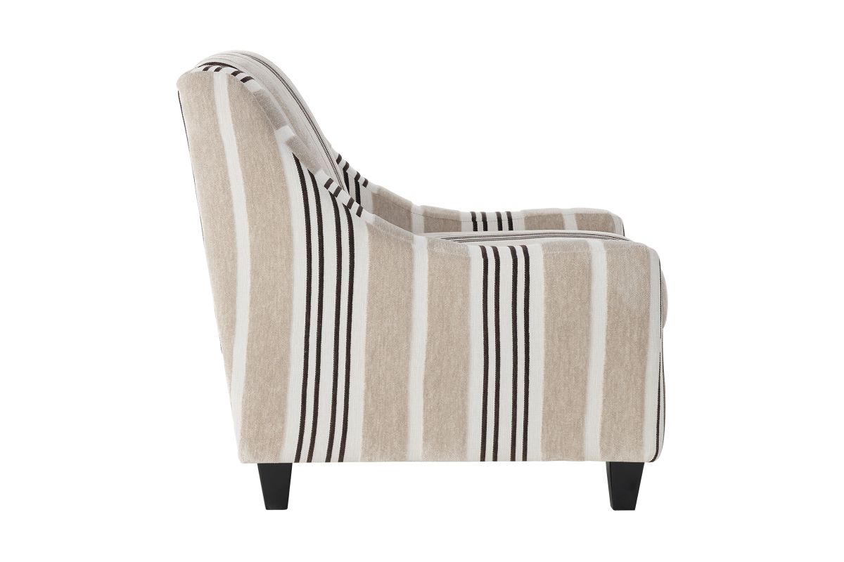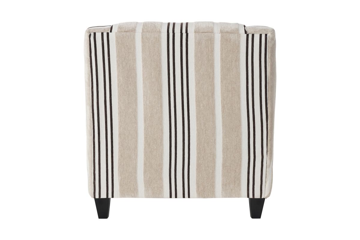The Bradford Accent Chair adds a stylish finishing touch to the Bradford collection with a compact silhouette and eye-catching pattern. Upholstered in a neutral striped fabric, this chair brings subtle contrast and visual interest while remaining versatile enough to blend effortlessly into transitional and casual spaces.