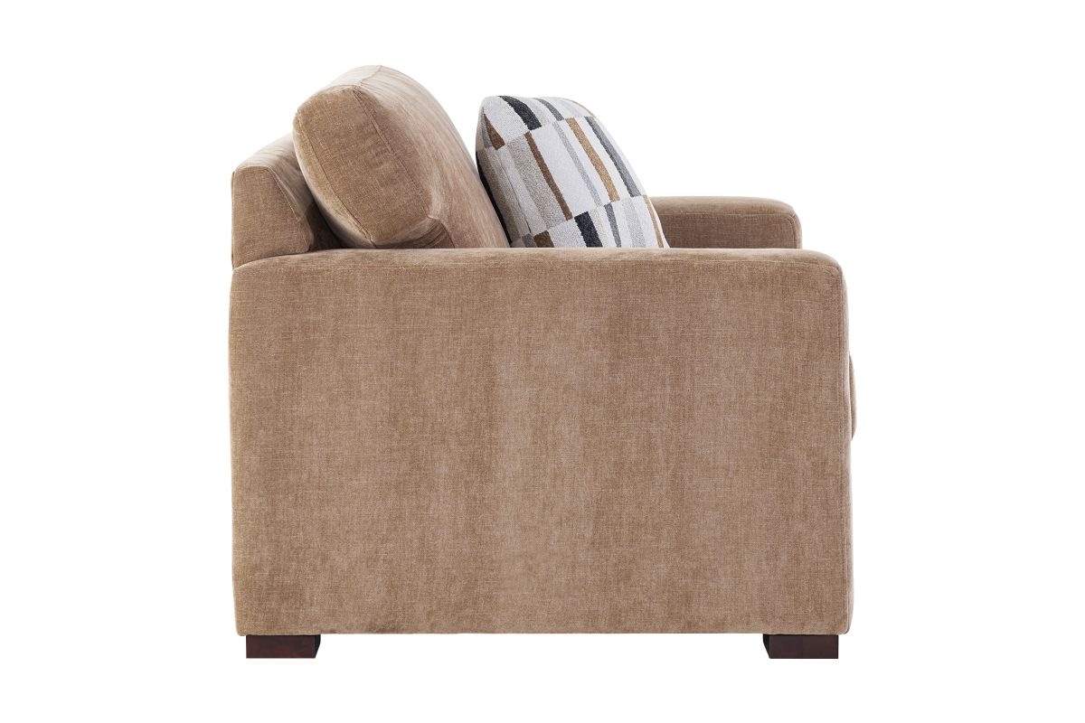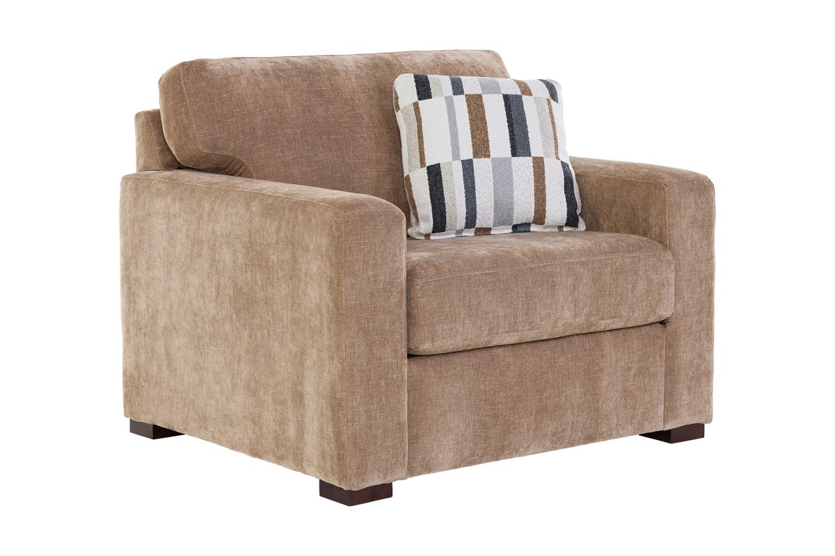 The Lakeshore Brown Chair and a 1/2 offers generous seating and relaxed comfort with a clean, contemporary look. Slightly wider than a standard chair, this piece provides extra room to lounge, curl up, or share, while maintaining the tailored silhouette and track-style arms that define the Lakeshore collection.
