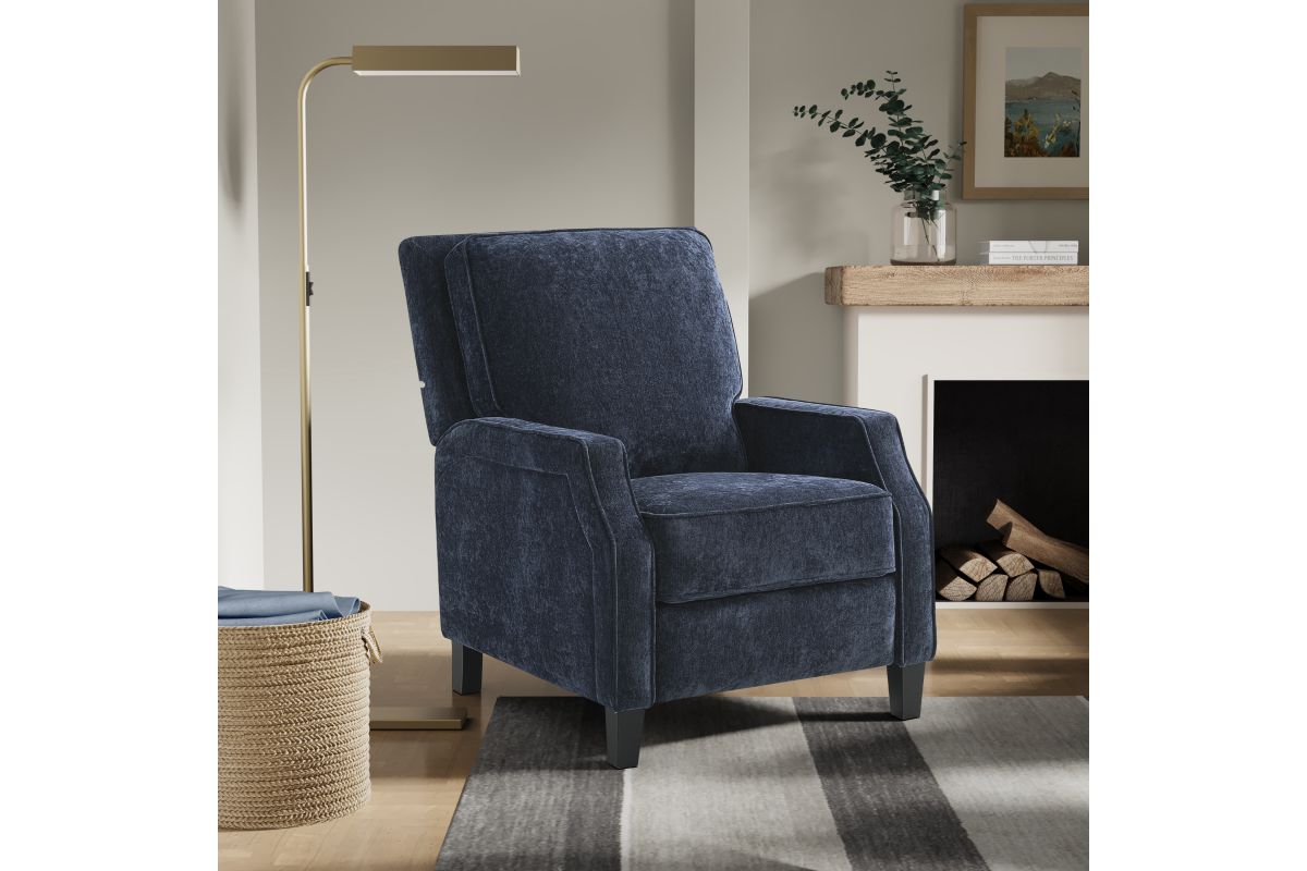 The Stanton Pushback Recliner blends timeless style with exceptional comfort, making it a standout piece for any living space. Upholstered in high-quality polyester fabric, this recliner offers a soft, durable surface that's both easy to maintain and designed for long-lasting use. This recliner features high-density foam and pocket coil comfort, ensuring a supportive yet plush experience with every sit. Adding to the overall comfort is the dacron wrapping, which enhances the chair's cushioning for a truly luxurious feel. Built with a solid hardwood frame and legs, the Stanton Pushback Recliner is designed for stability and strength, offering a sturdy foundation that will stand the test of time. Perfect for relaxing after a long day, this recliner seamlessly combines comfort, style, and durability.