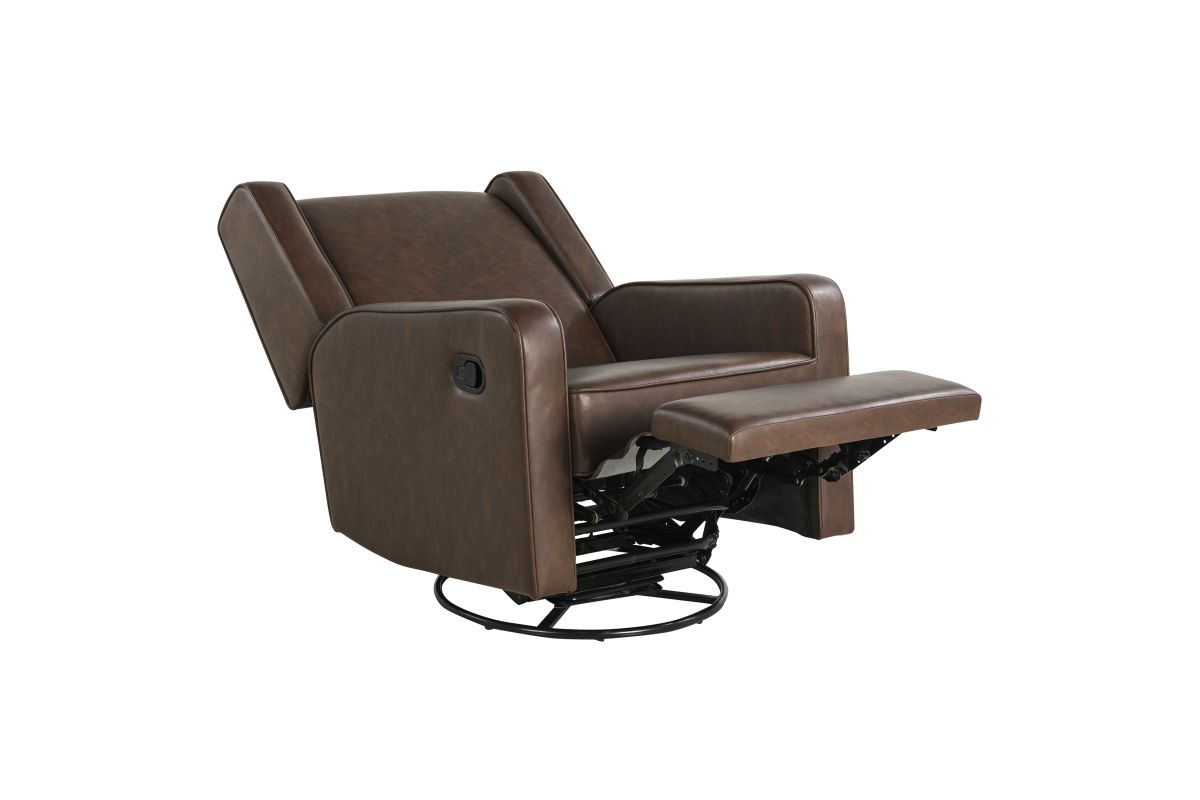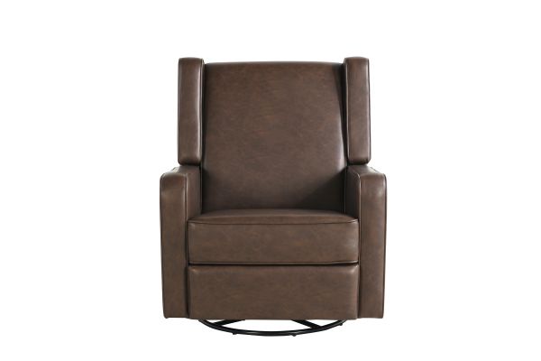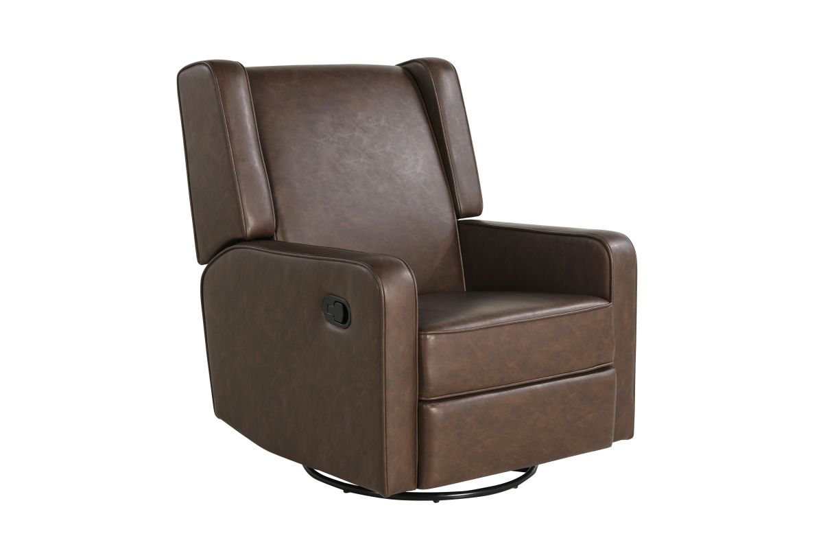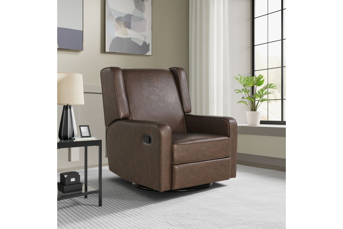 The Einsley Swivel Rocker Recliner offers a perfect blend of style and comfort. This manual recliner is upholstered in quality vegan leather fabric, ensuring durability and a sleek look. High-density foams and pocket coil comfort provide superior support and relaxation. The solid hardwood frame, dacron wrapped for added durability, ensures long-lasting use. Enjoy the versatility of a swivel rocker recliner with the Einsley, designed for ultimate comfort and style.