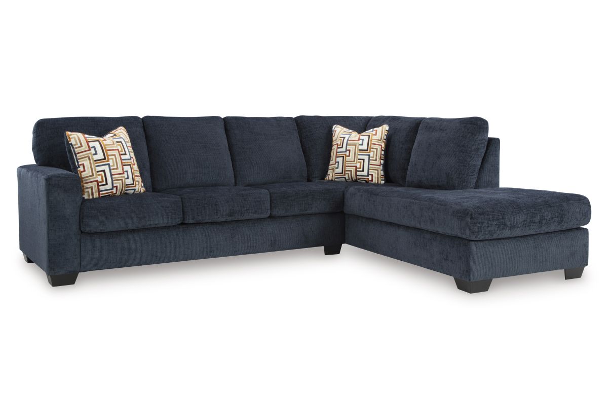 Looking to make a bold statement with color? Liven up your living room with this sectional with chaise. Its trend-right navy blue upholstery adds a playful pop of color to your decor. Bold and eclectic accent pillows complete the look. Pairing posh style with everyday comfort, the sectional is a welcome addition to contemporary spaces.