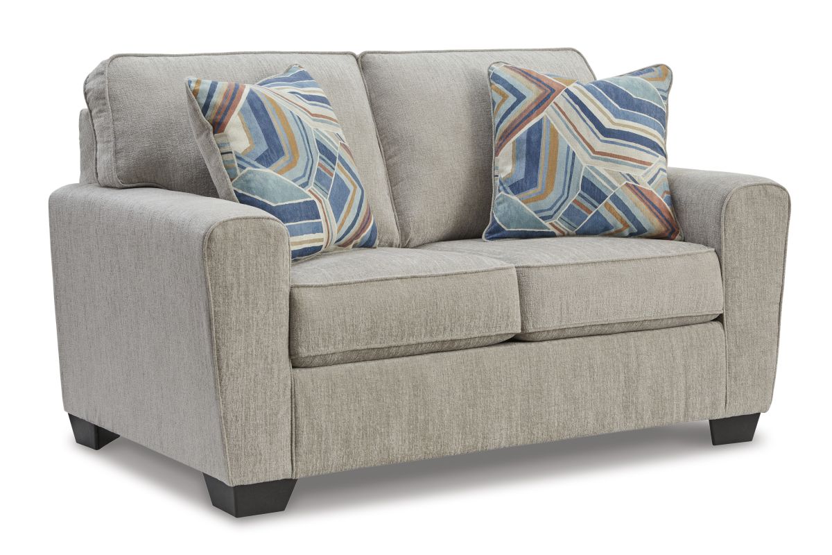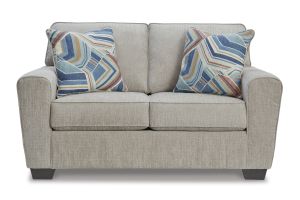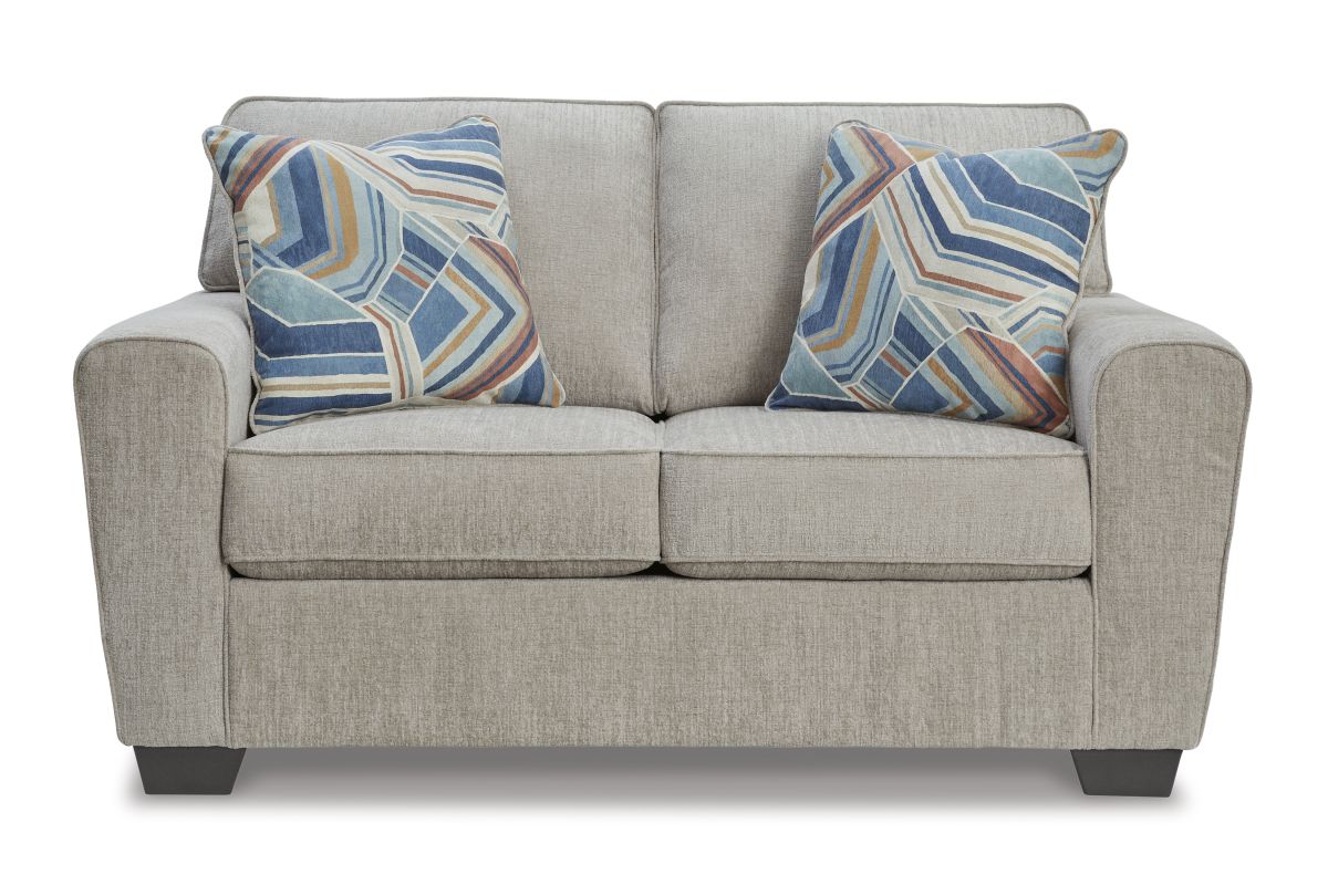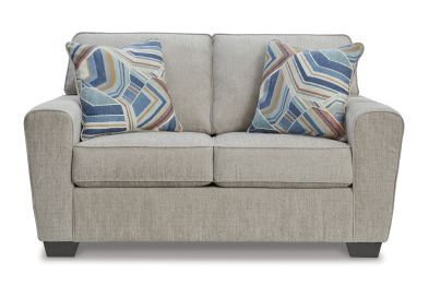 Need a simple style refresh? Liven up your living room essentials with this loveseat. A chunky silhouette holds invitingly ample cushioning you'll long to lounge in. Crosshatched upholstery and accent pillows give the otherwise casual design a delightful visual texture that's perfect for settings from classic to contemporary.