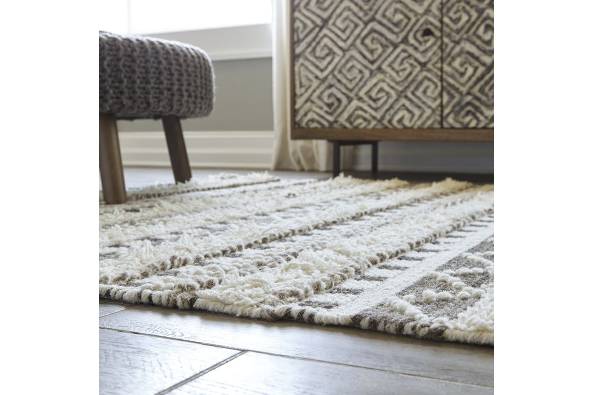 Stay on trend with tribal chic. This area rug is just neutral enough to work with your decor and just cool enough to keep your space hip. Decorate again and again on top of this dynamic floor covering; the ivory, brown and natural geometric design work so well with everything.