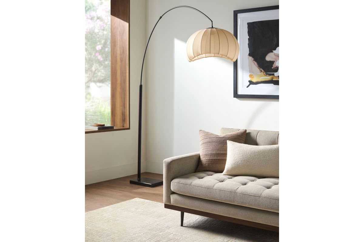 Anchored by a plated black iron base for stability and contrast, this lamp balances sculptural presence with everyday functionality. Perfect for living rooms, bedrooms, or office spaces, the Desota Floor Lamp pairs effortlessly with contemporary, mid-century modern, and minimalist interiors.
