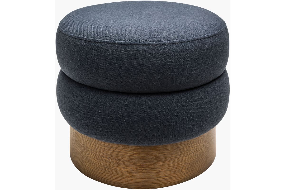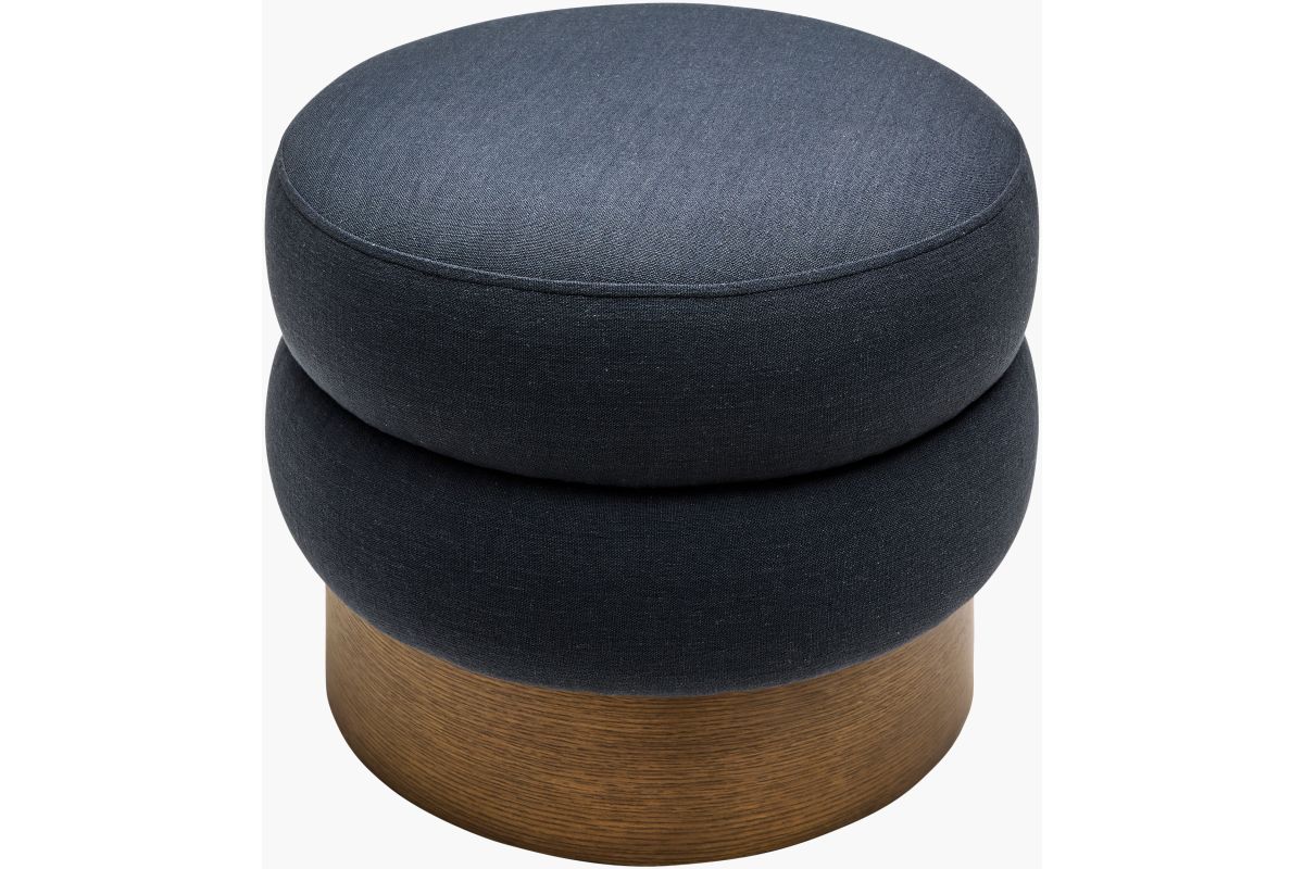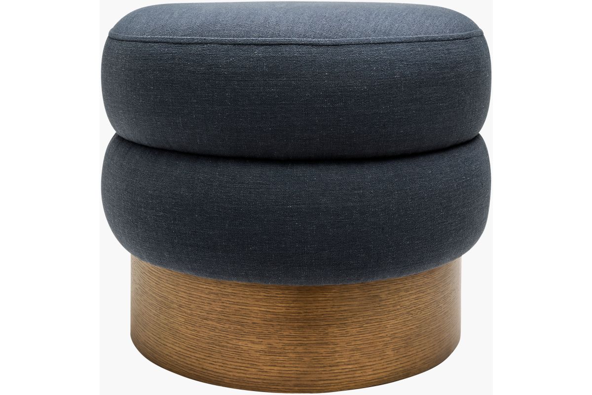 The Lona Ink Blue Ottoman brings modern softness and sculptural style to any living space. Upholstered in a rich ink-blue fabric with a refined polyester-linen blend, this piece offers subtle texture and everyday durability. Its generously cushioned foam seat provides comfortable support, making it perfect as a footrest, extra seating, or a stylish accent.
