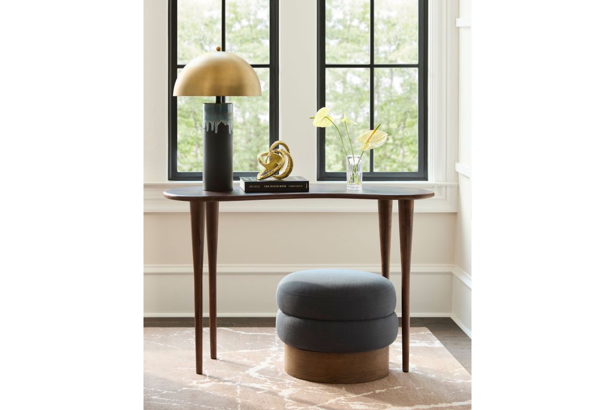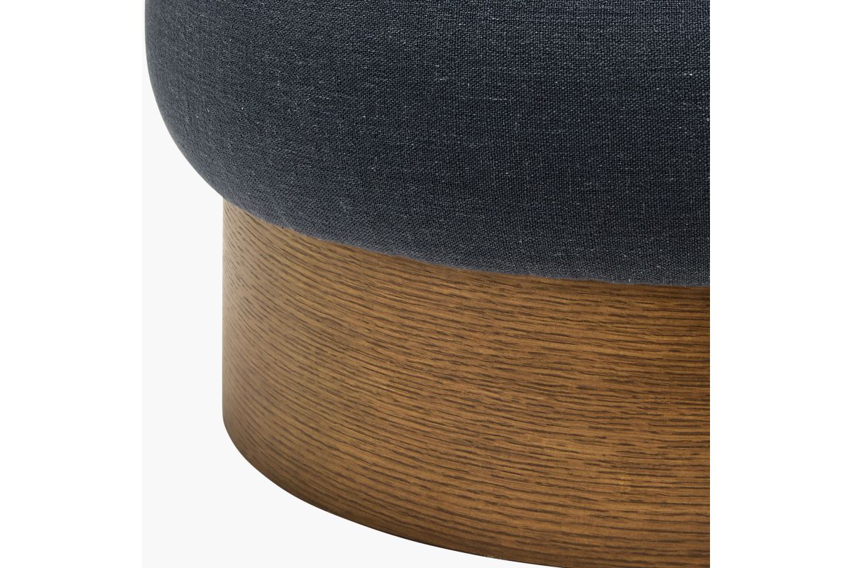 Grounded by a warm brown natural ash wood veneer base, the rounded silhouette creates a striking contrast between soft upholstery and organic wood tones. Designed to complement contemporary, mid-century modern, and casual luxe interiors, the Lona Ottoman adds depth, comfort, and visual interest wherever it’s placed.