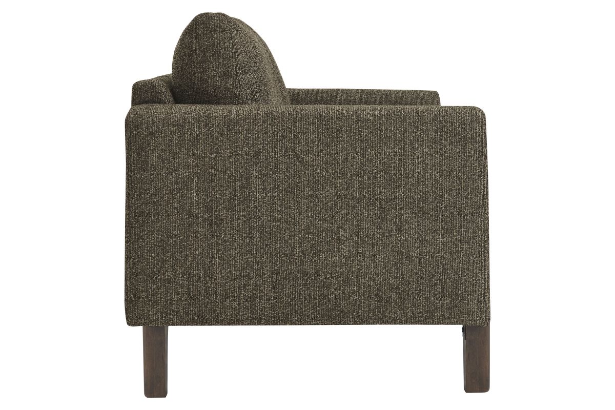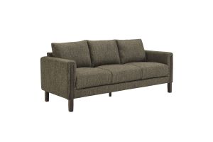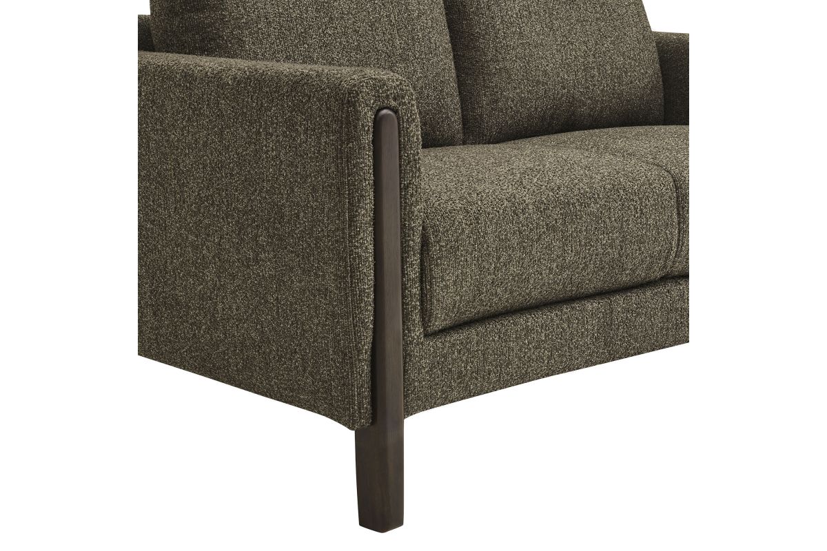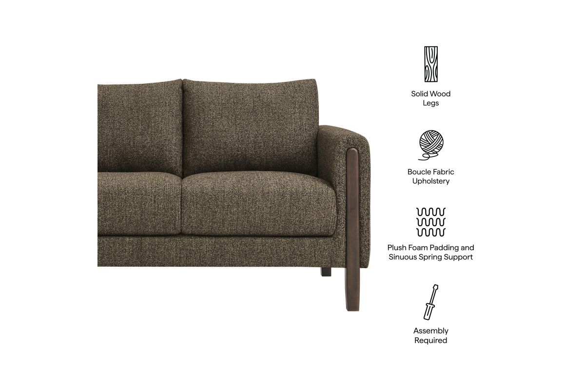 Settle into sculptural comfort with the Hawken Boucle Fabric Upholstered Loveseat. Designed with bold curves and oversized proportions, this two-seater sofa offers a wide, inviting seat and gently sloped armrests for a cozy reading or relaxation experience. Upholstered in soft brushed boucle fabric, Hawken adds depth and visual warmth to any space—from living room to bedroom to office lounge. The sturdy solid wood legs complement the textured boucle upholstery with natural warmth and mid-century charm. With a supportive foam-padded seat, plush back cushions, and zigzag spring suspension, this modern loveseat delivers everyday comfort with timeless style. Assembly required. Weight Capacity: 500 lbs.