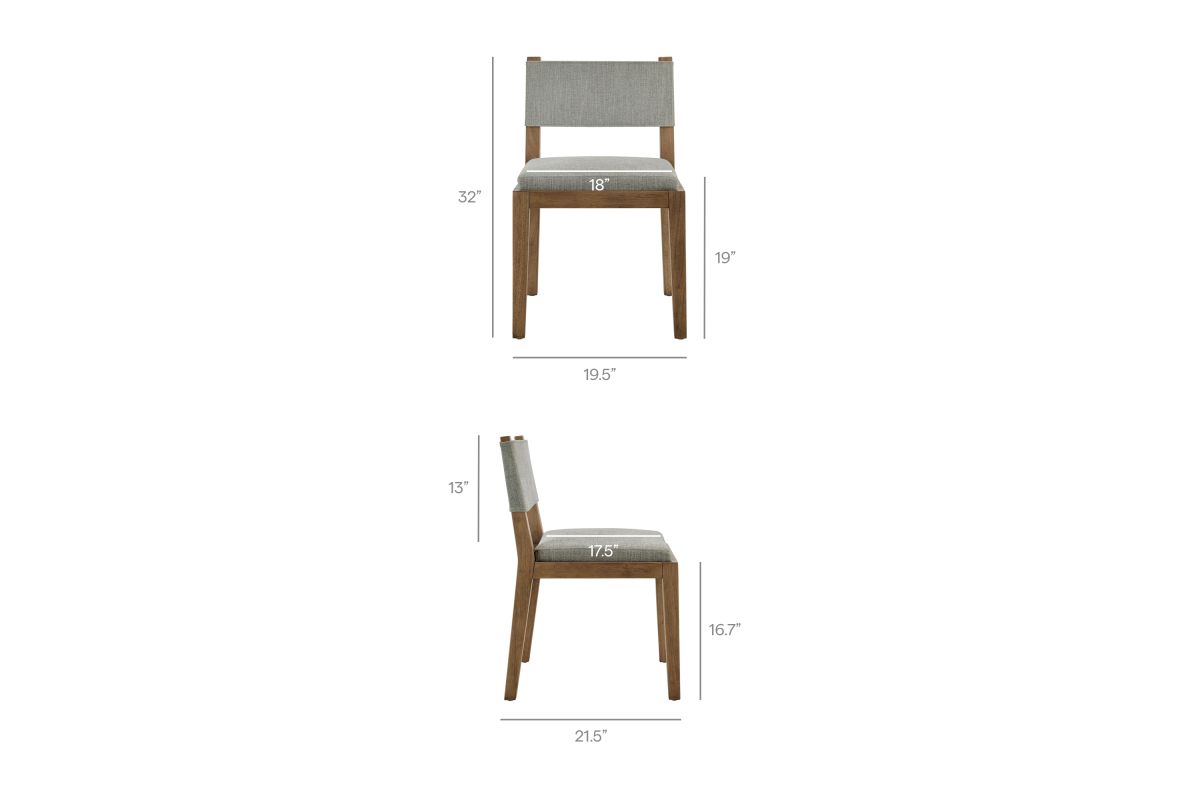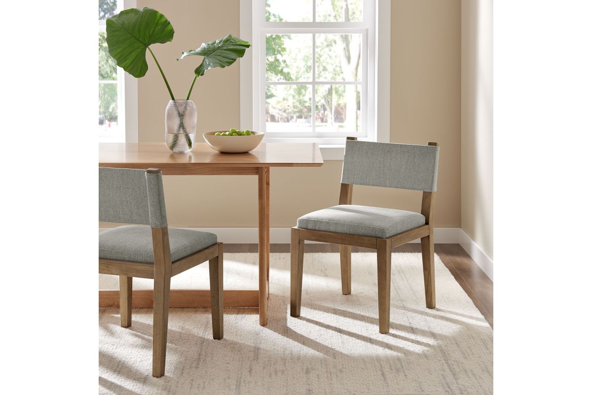 The Calder Dining Side Chair blends minimalist style with everyday comfort, making it a versatile addition to any dining room, kitchen, or small-space setup. Crafted with a kiln-dried solid rubberwood frame, this modern upholstered dining chair with wood frame offers reliable support and organic charm. The cushioned seat and low back are upholstered in soft, durable fabric, providing a comfortable perch for everyday meals or casual gatherings. Designed as an armless dining chair with fabric upholstery, Calder's clean lines and compact profile make it ideal for narrow dining spaces or as a modern upholstered chair with solid wood frame for contemporary interiors. Whether styled as a side chair, kitchen chair, or upholstered accent chair, Calder brings a refined, Scandinavian-inspired touch to any dinner table or living room setting. Includes non-marking floor glides. Arrives fully assembled. Weight Capacity: 300 lbs.