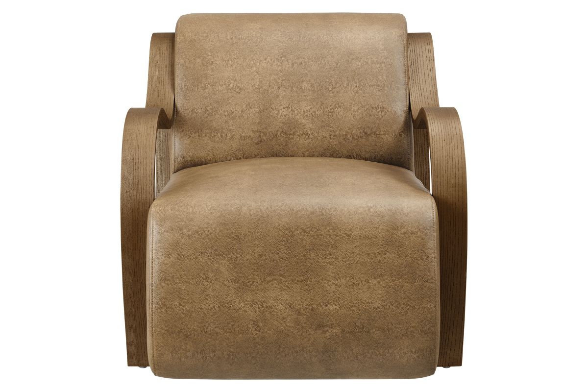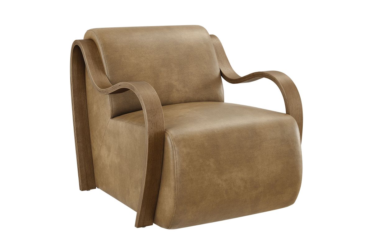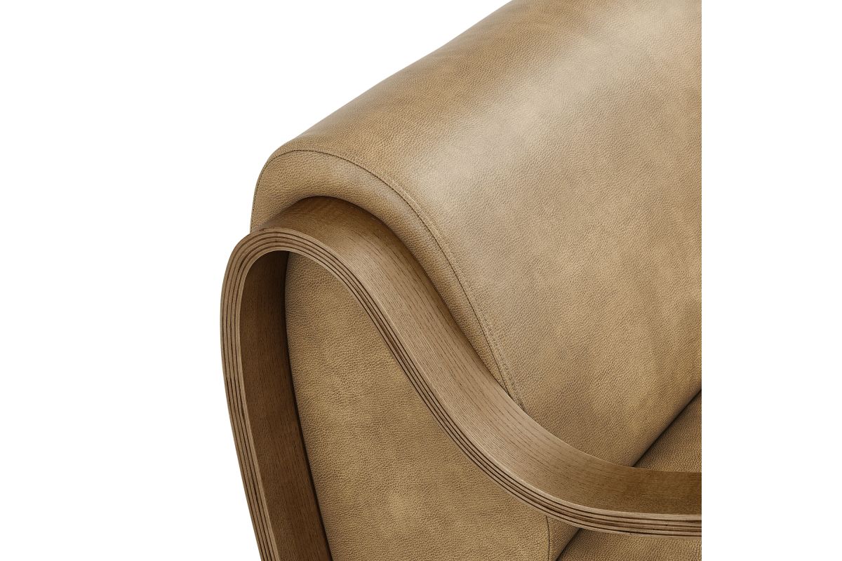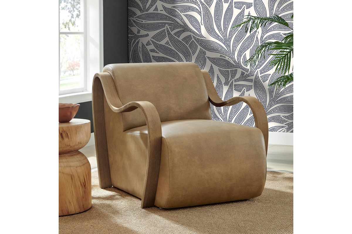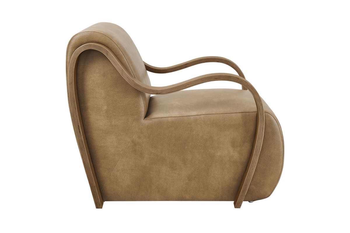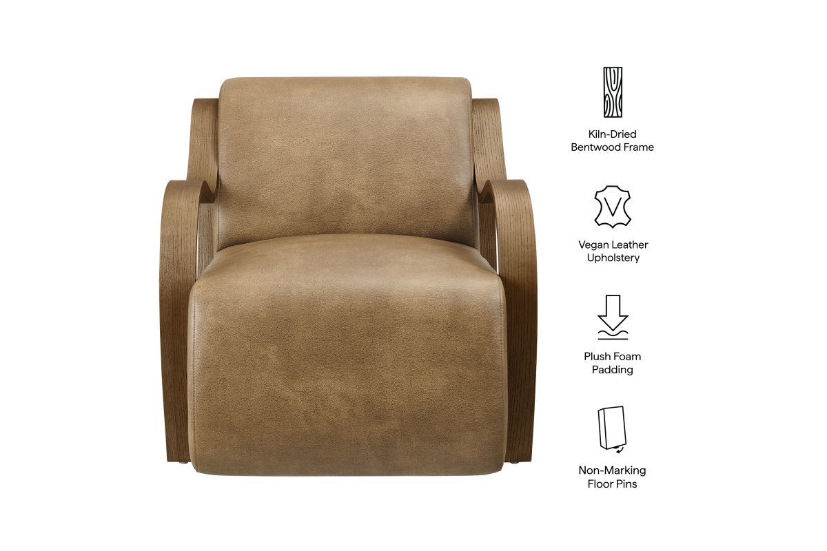 The Atrium Accent Chair blends sculptural design with everyday comfort, making it a standout addition to any modern living space. Upholstered in pebbled vegan leather, this lounge chair offers a soft, refined texture with a sleek, contemporary edge. The curved seat cushion extends seamlessly to the floor for a grounded silhouette, while gracefully curved arms crafted from kiln-dried wood add a mid-century inspired sculptural element. Perfect for use as a reading chair, bedroom accent chair, or statement lounge chair, Atrium combines plush foam padding with a striking design that elevates any interior. Arrives fully assembled with non-marking floor pins included. Weight Capacity: 300 lbs.