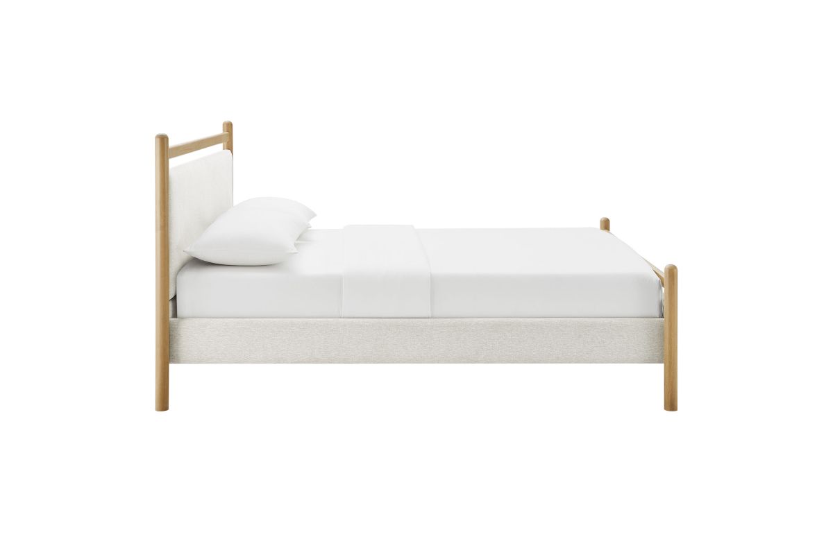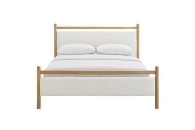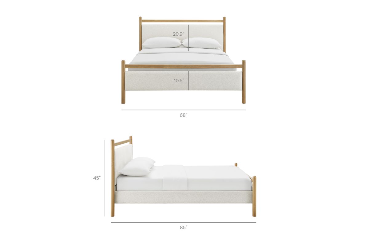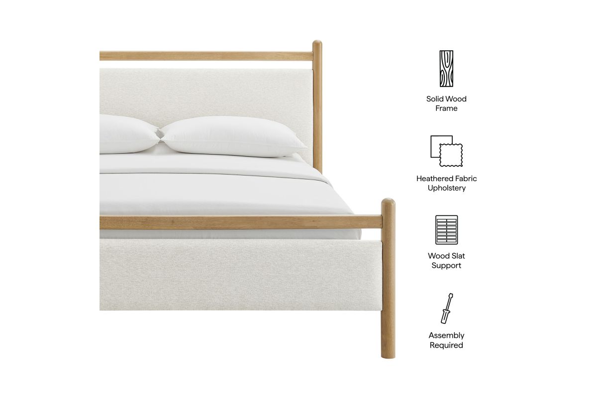 Refresh a primary or guest bedroom with the Ginny Queen Size Platform Bed, a clean, modern profile built on a solid wood frame with a cushioned headboard and footboard for a soft, lounge-worthy feel. Smooth lines keep the look light, while padded touchpoints invite reading, relaxing, and easy wind-downs. A durable wood slat support system provides a sturdy, well-ventilated base for your queen mattress—no box spring needed—making setup simple and the sleep surface comfortable night after night. Designed to mix with a range of bedding and decor, Ginny delivers a tidy, pulled-together look from day one. Assembly required.