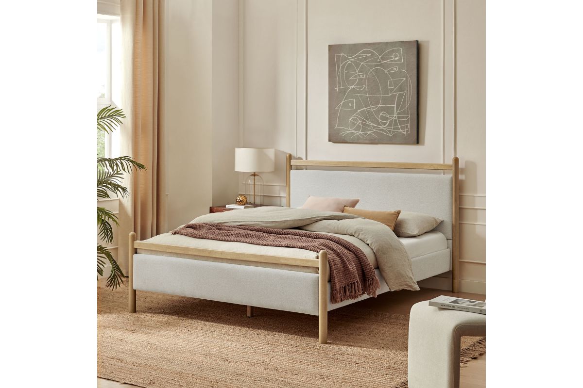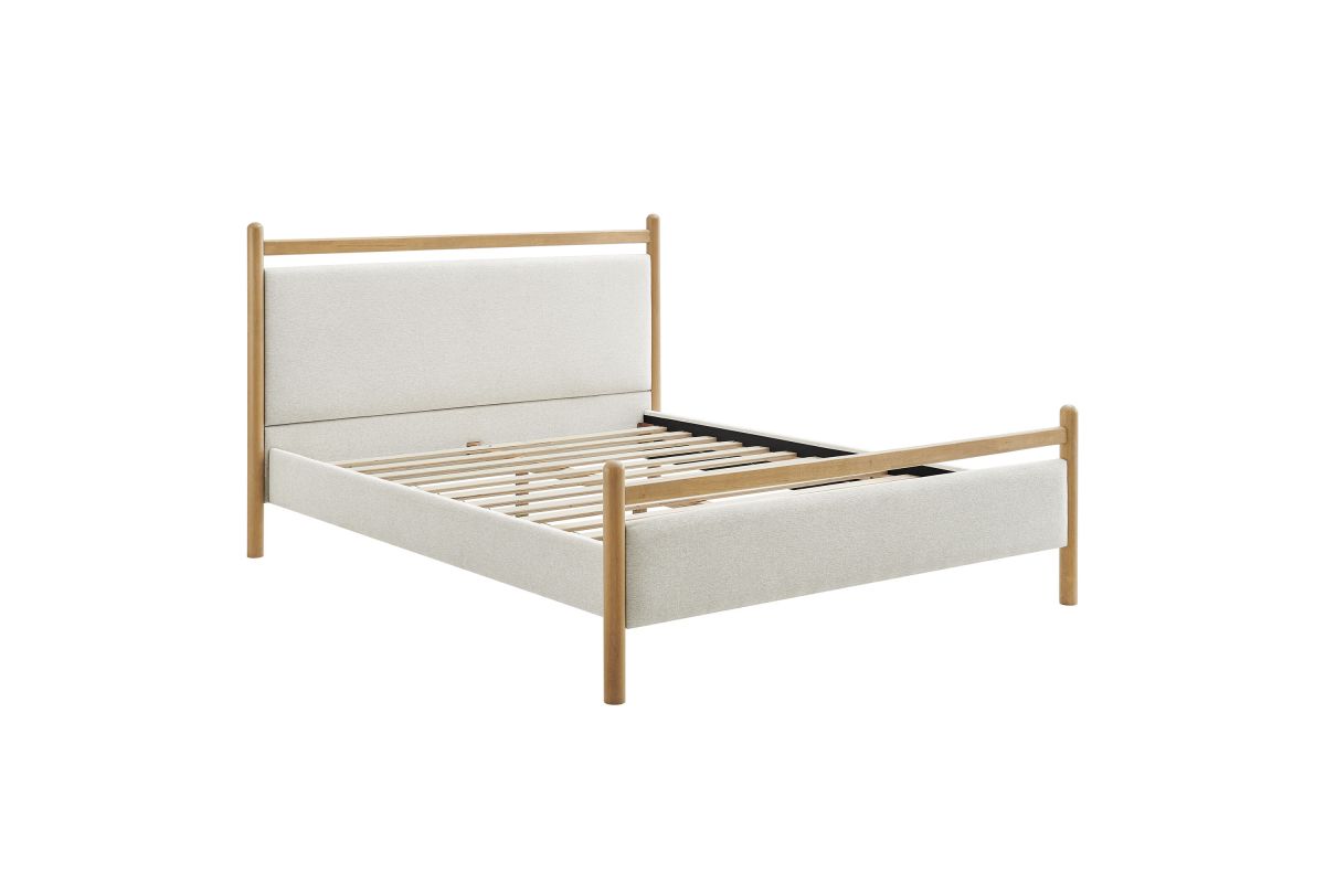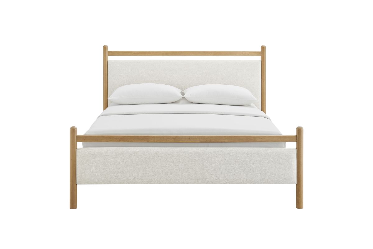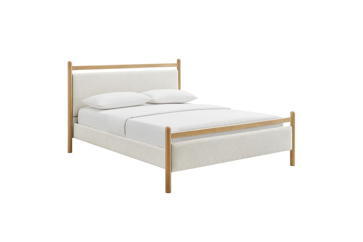 Refresh a primary or guest bedroom with the Ginny Queen Size Platform Bed, a clean, modern profile built on a solid wood frame with a cushioned headboard and footboard for a soft, lounge-worthy feel. Smooth lines keep the look light, while padded touchpoints invite reading, relaxing, and easy wind-downs. A durable wood slat support system provides a sturdy, well-ventilated base for your queen mattress—no box spring needed—making setup simple and the sleep surface comfortable night after night. Designed to mix with a range of bedding and decor, Ginny delivers a tidy, pulled-together look from day one. Assembly required.