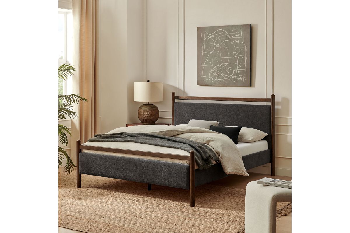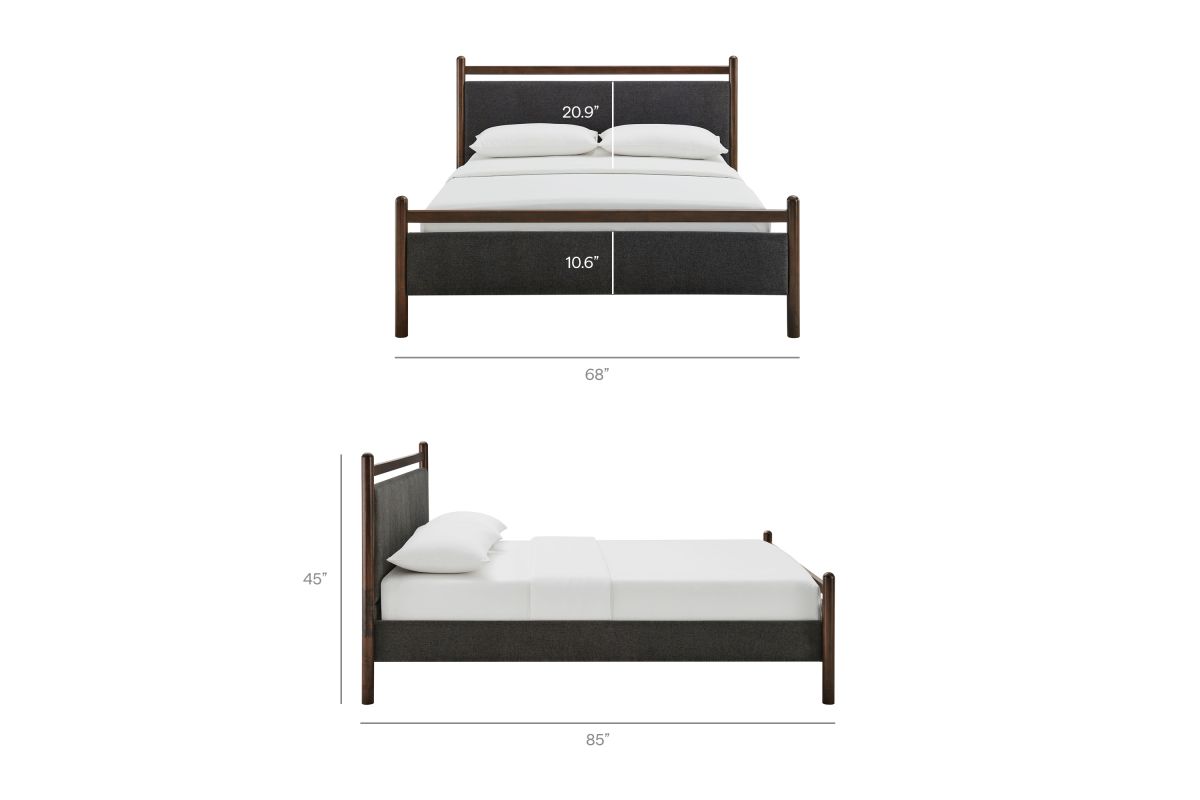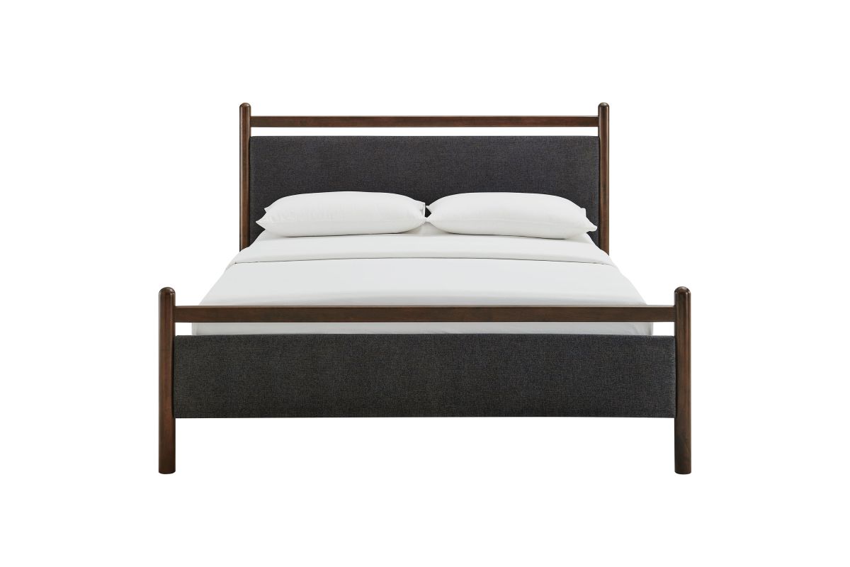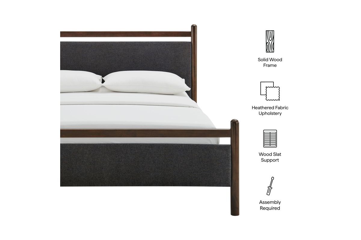 Refresh a primary or guest bedroom with the Ginny Queen Size Platform Bed, a clean, modern profile built on a solid wood frame with a cushioned headboard and footboard for a soft, lounge-worthy feel. Smooth lines keep the look light, while padded touchpoints invite reading, relaxing, and easy wind-downs. A durable wood slat support system provides a sturdy, well-ventilated base for your queen mattress—no box spring needed—making setup simple and the sleep surface comfortable night after night. Designed to mix with a range of bedding and decor, Ginny delivers a tidy, pulled-together look from day one. Assembly required.