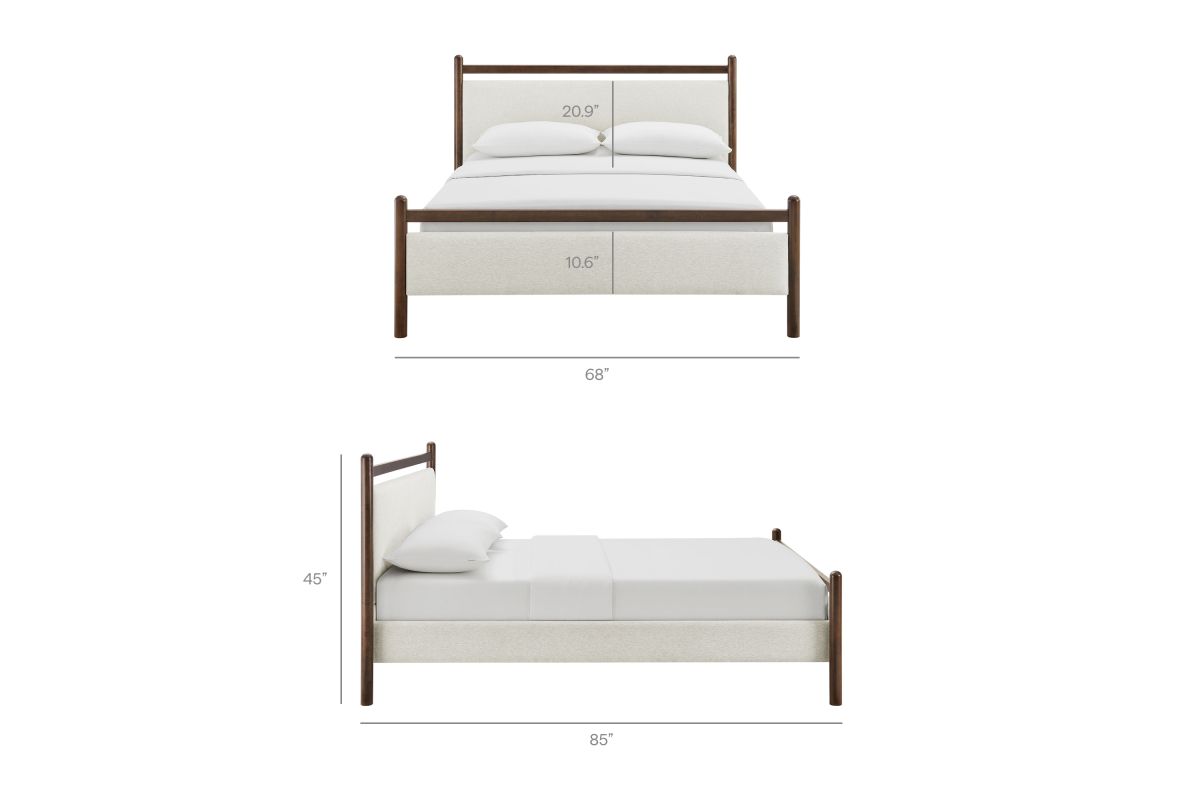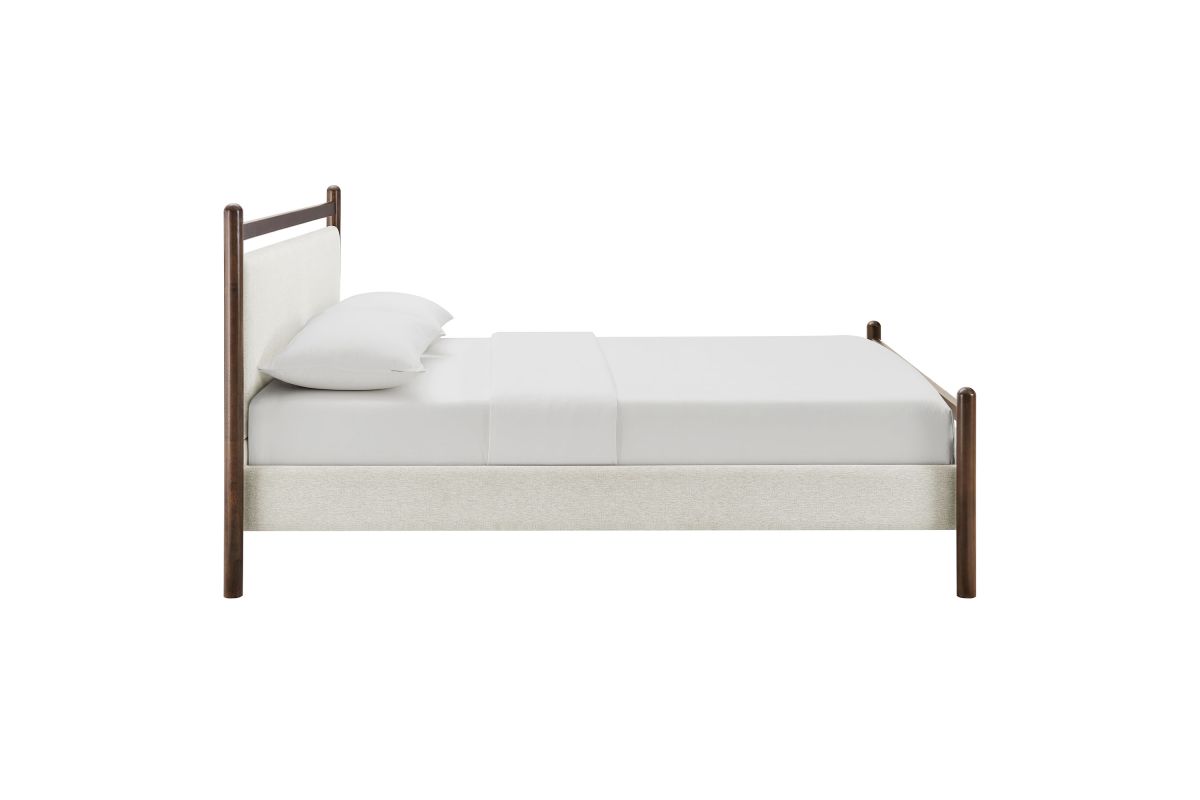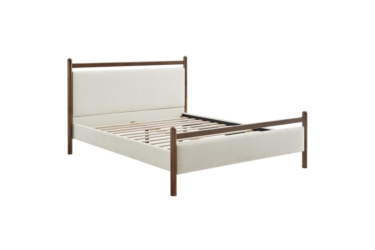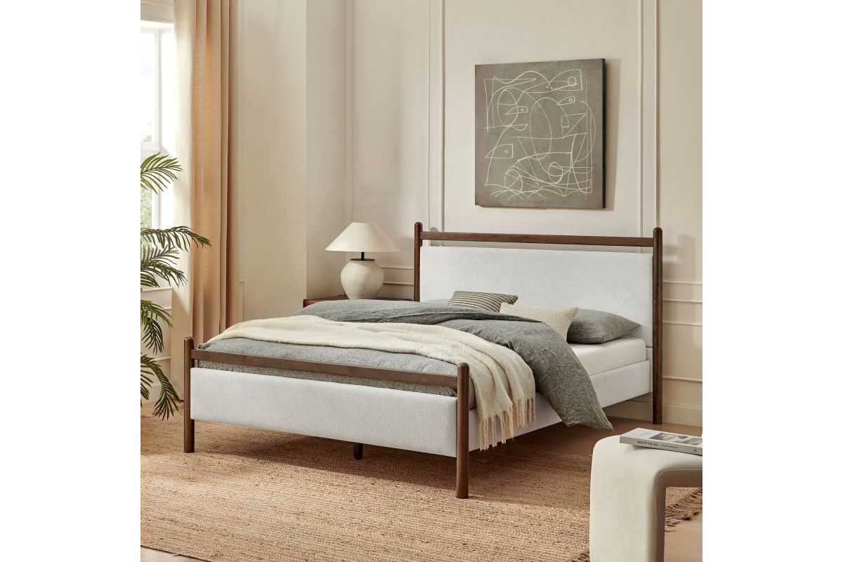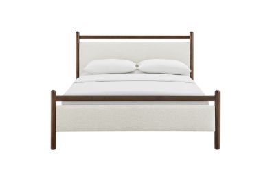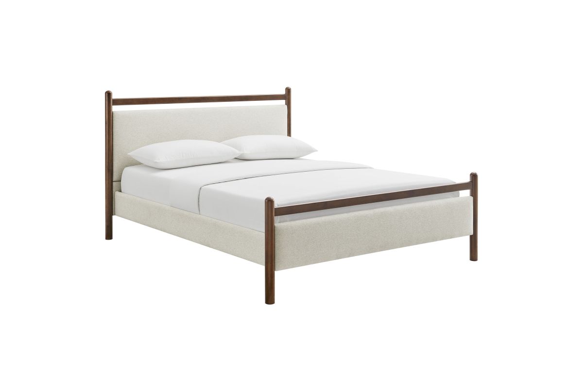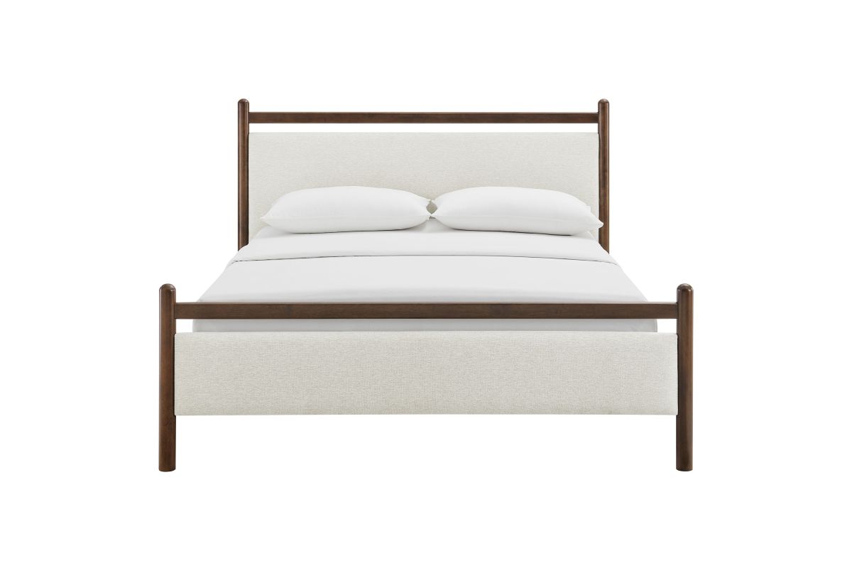 Refresh a primary or guest bedroom with the Ginny Queen Size Platform Bed, a clean, modern profile built on a solid wood frame with a cushioned headboard and footboard for a soft, lounge-worthy feel. Smooth lines keep the look light, while padded touchpoints invite reading, relaxing, and easy wind-downs. A durable wood slat support system provides a sturdy, well-ventilated base for your queen mattress—no box spring needed—making setup simple and the sleep surface comfortable night after night. Designed to mix with a range of bedding and decor, Ginny delivers a tidy, pulled-together look from day one. Assembly required.