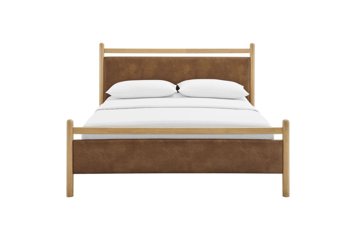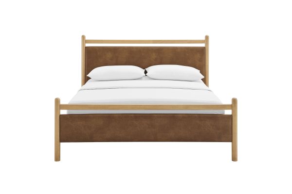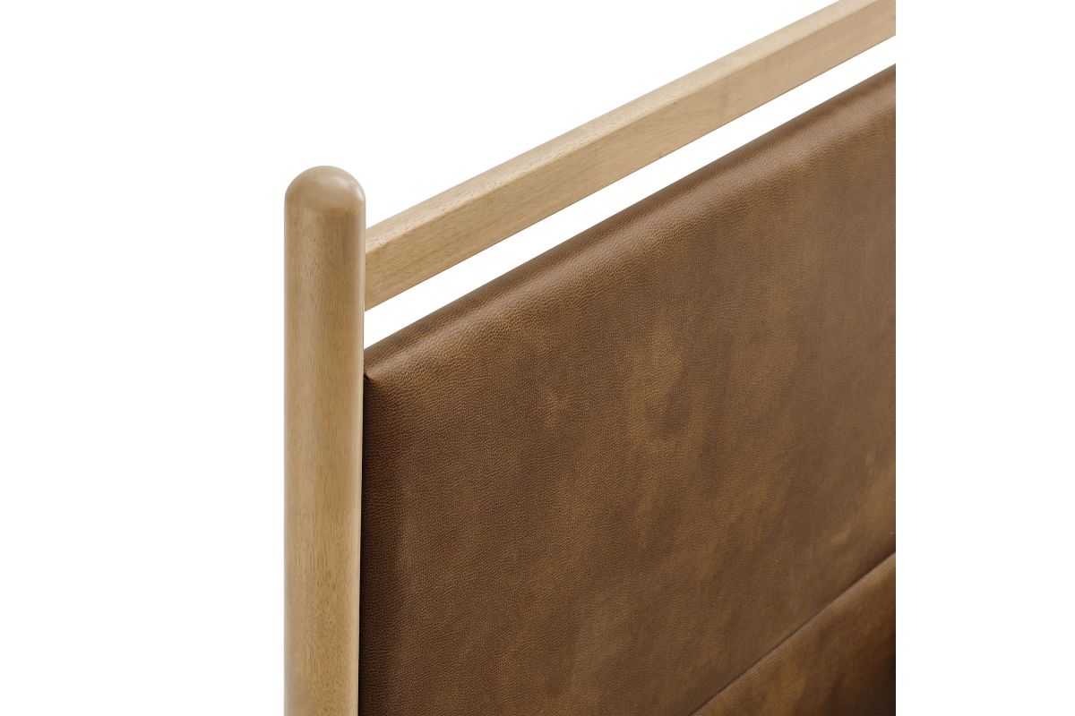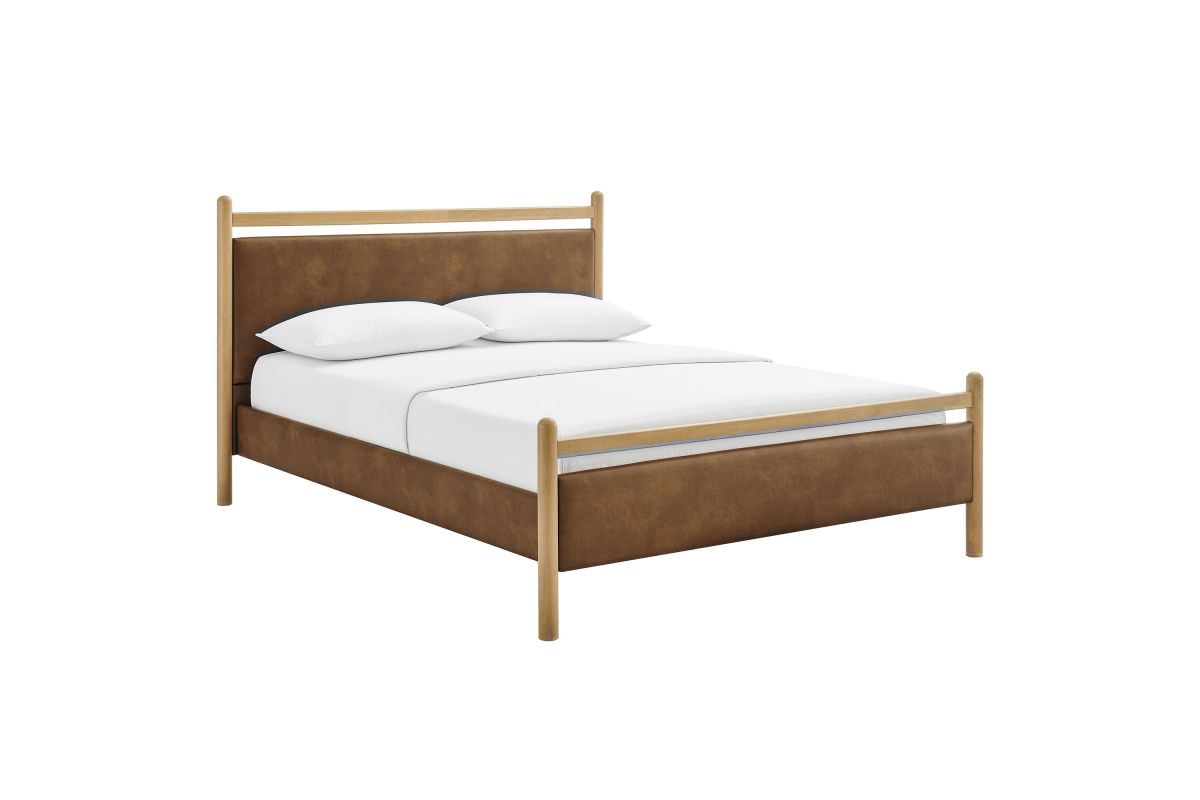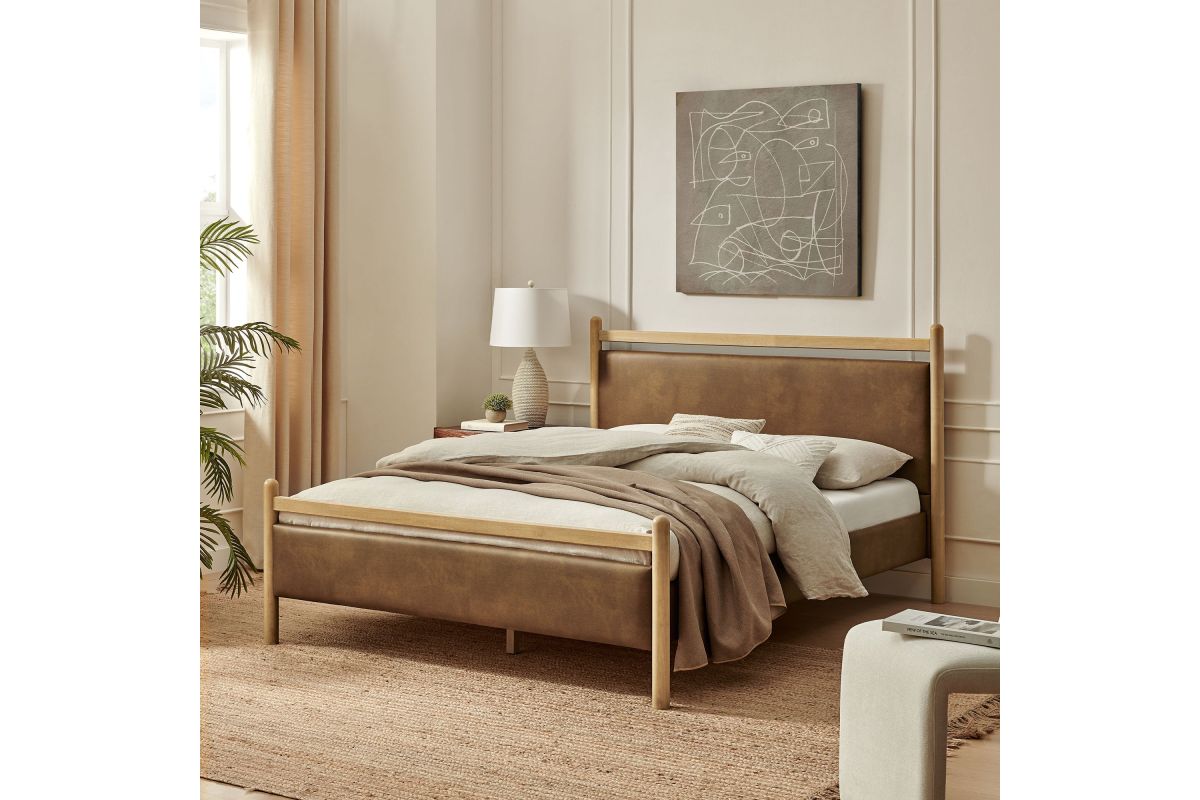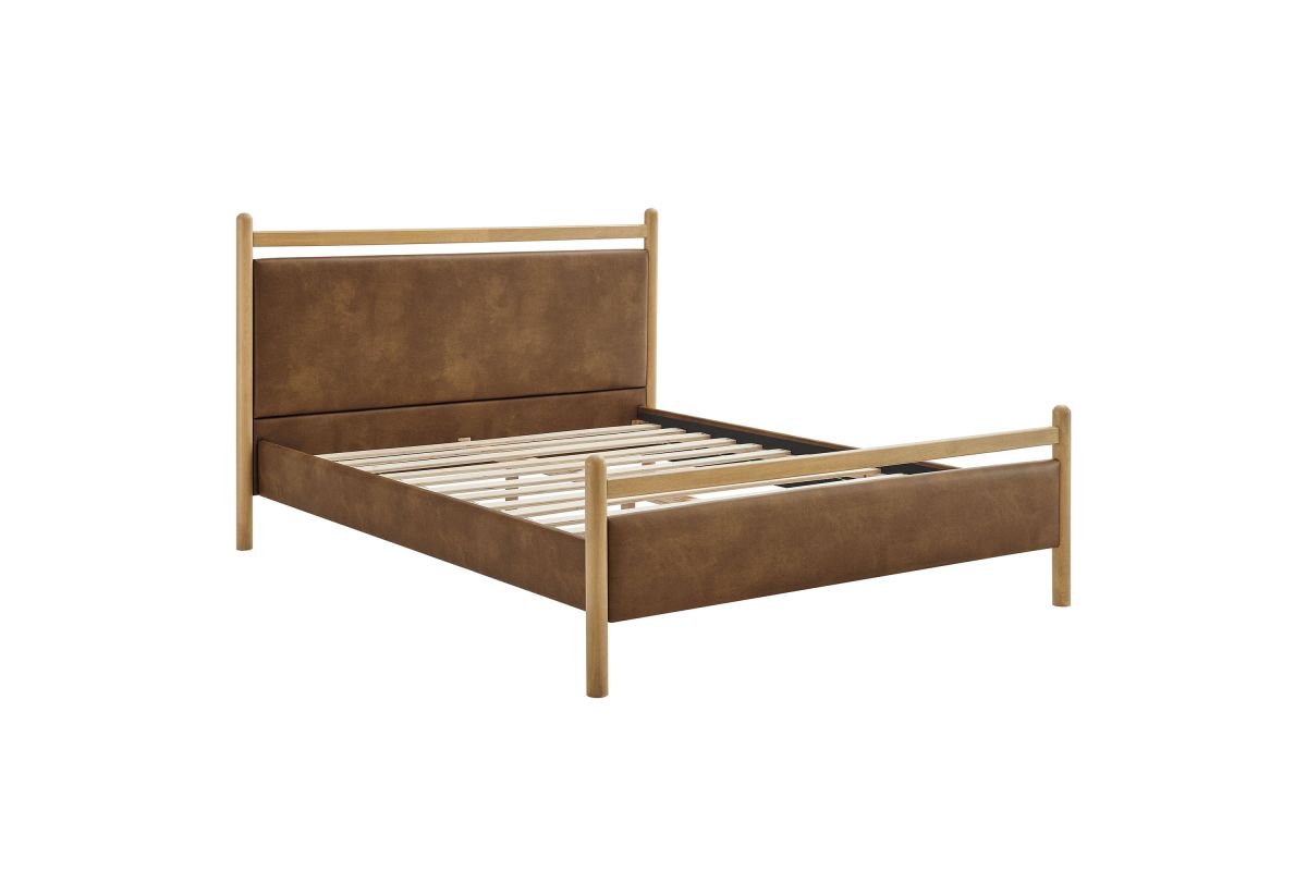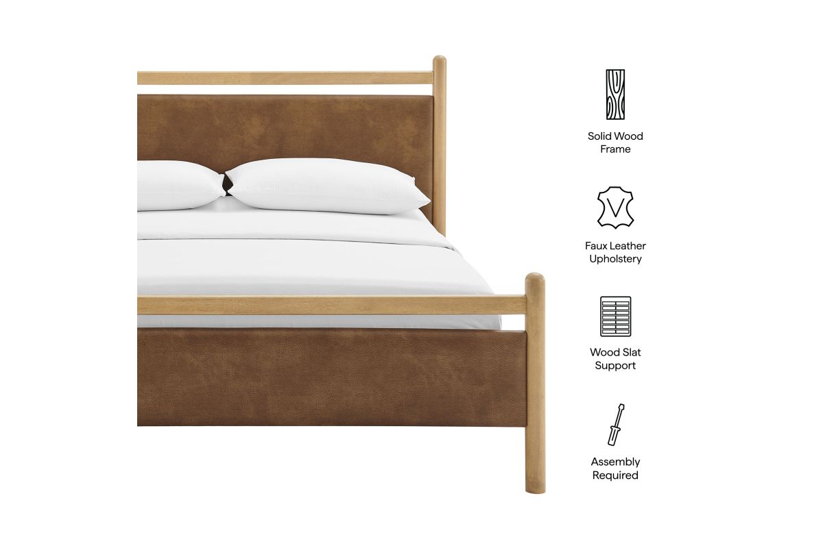 Refresh a primary or guest bedroom with the Ginny Queen Size Vegan Leather Platform Bed, a clean, modern profile built on a solid wood frame with a cushioned faux leather headboard and footboard for a supportive, lounge-comfort feel. Smooth lines keep the look light, while padded touchpoints invite reading, relaxing, and easy wind-downs. A durable wood slat support system provides a sturdy, well-ventilated base for your queen mattress—no box spring needed—making setup simple and the sleep surface comfortable night after night. Designed to mix with a range of bedding and decor, Ginny delivers a tidy, pulled-together look from day one. Assembly required.