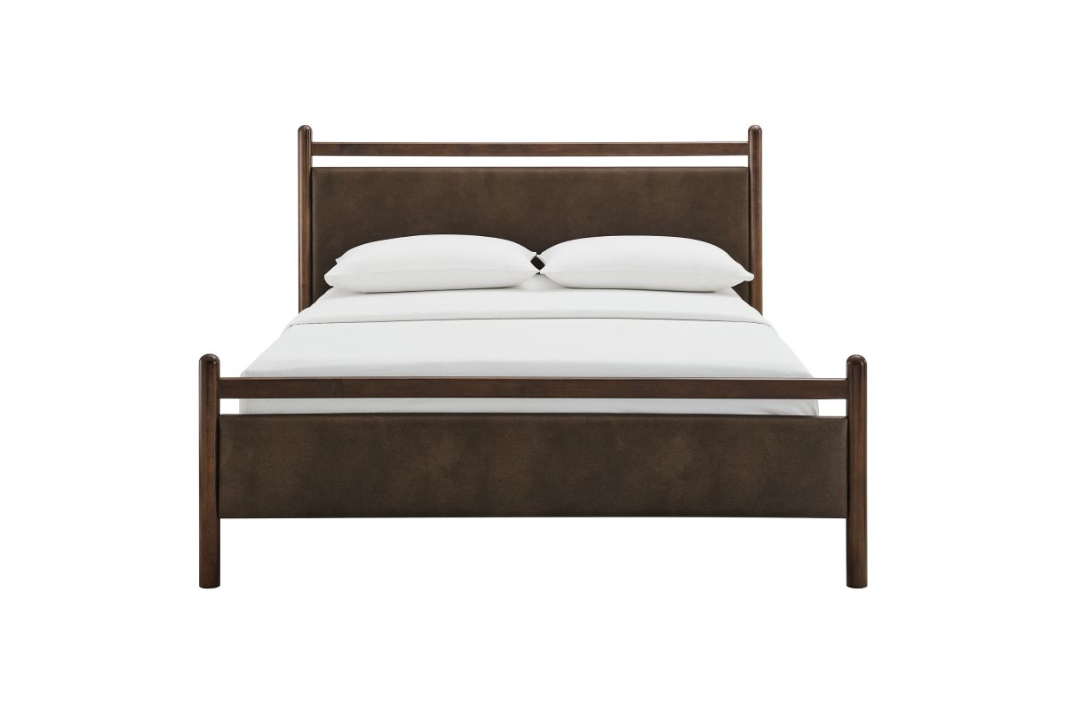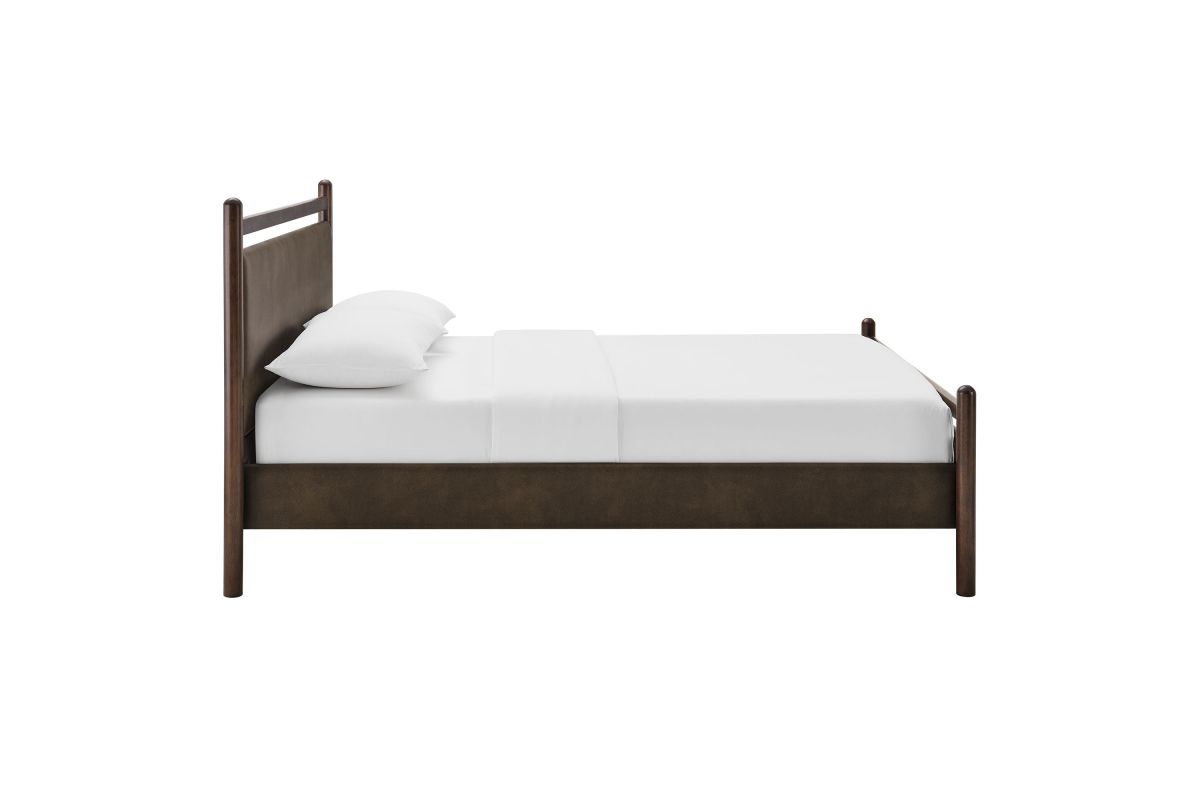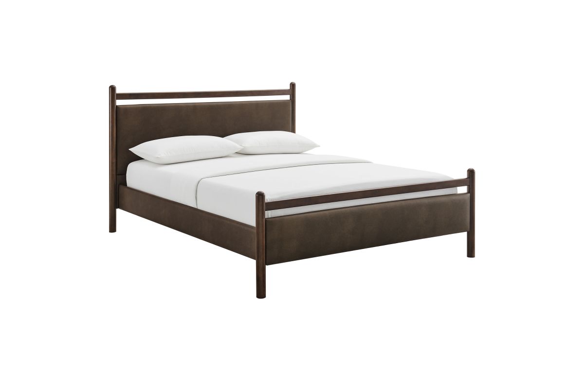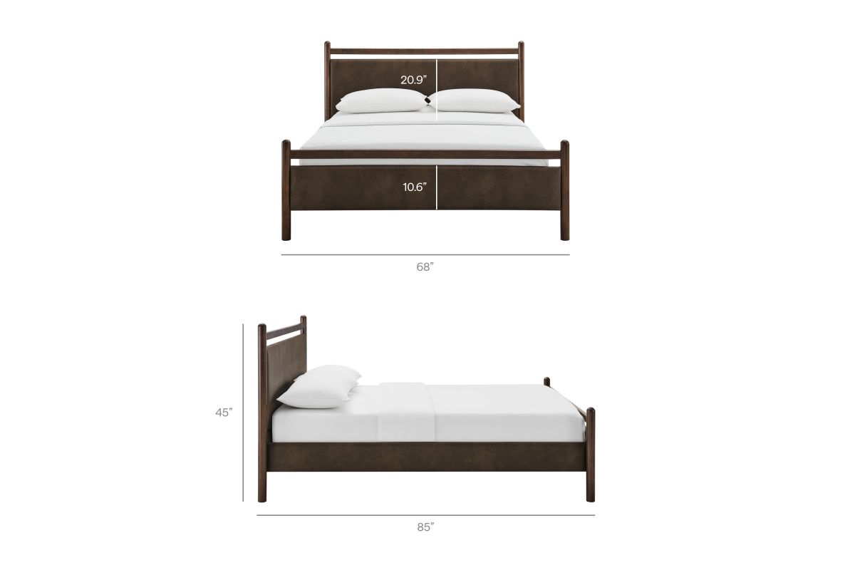 Refresh a primary or guest bedroom with the Ginny Queen Size Vegan Leather Platform Bed, a clean, modern profile built on a solid wood frame with a cushioned faux leather headboard and footboard for a supportive, lounge-comfort feel. Smooth lines keep the look light, while padded touchpoints invite reading, relaxing, and easy wind-downs. A durable wood slat support system provides a sturdy, well-ventilated base for your queen mattress—no box spring needed—making setup simple and the sleep surface comfortable night after night. Designed to mix with a range of bedding and decor, Ginny delivers a tidy, pulled-together look from day one. Assembly required.