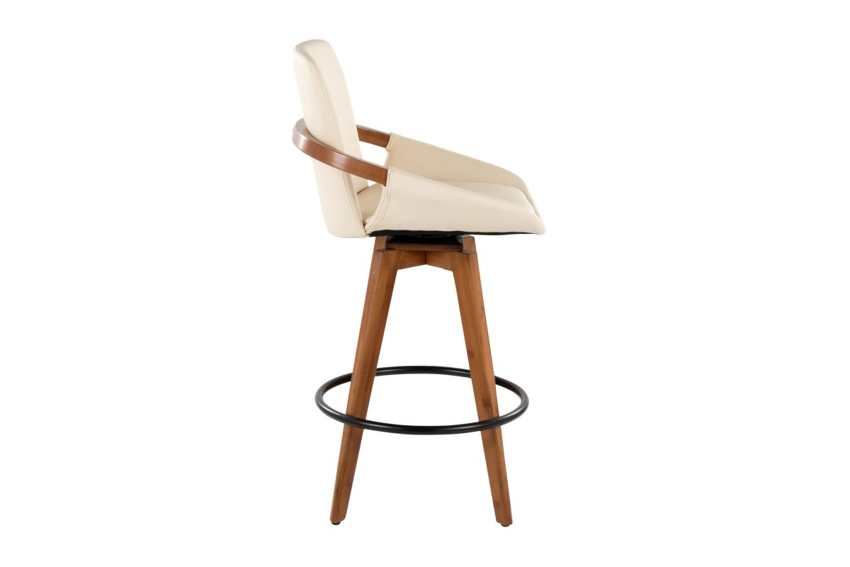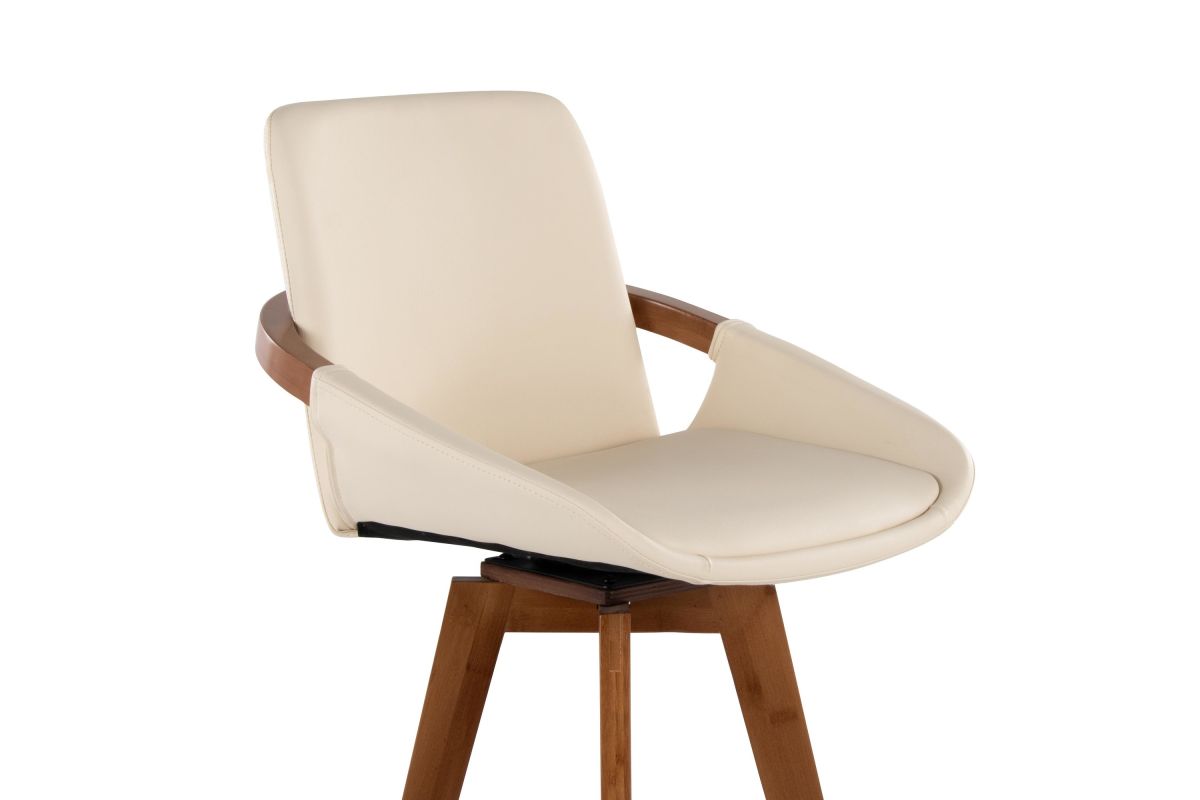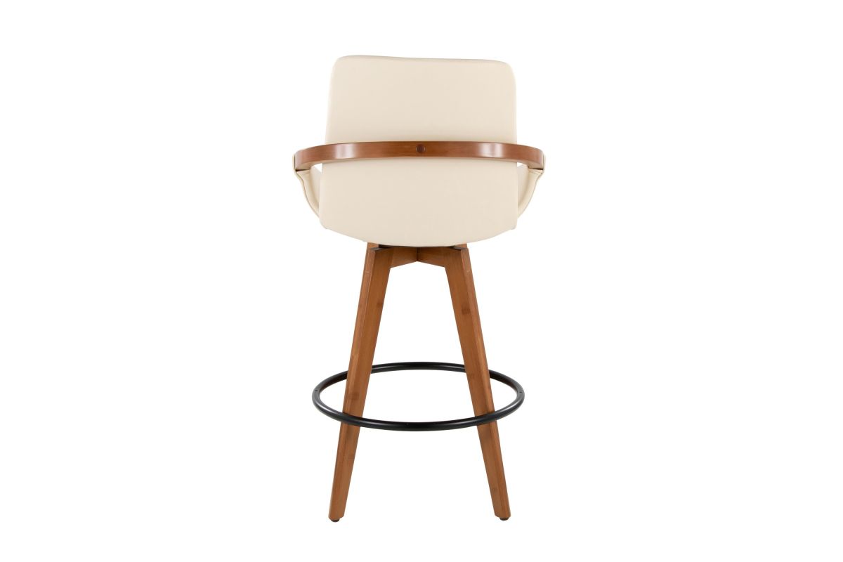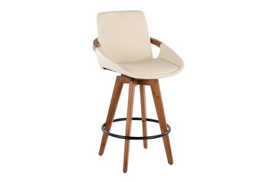 Mid-Century inspired, the Cosmo Counter Stool by LumiSource combines style and comfort! A faux leather seat is accented by stylish walnut wood armrest and legs, with smooth swivel capability. Available in a variety of color combinations, choose the one that fits your space the best.