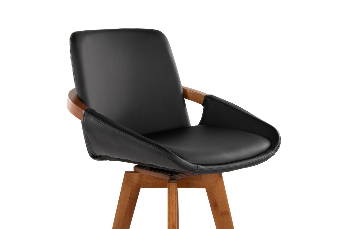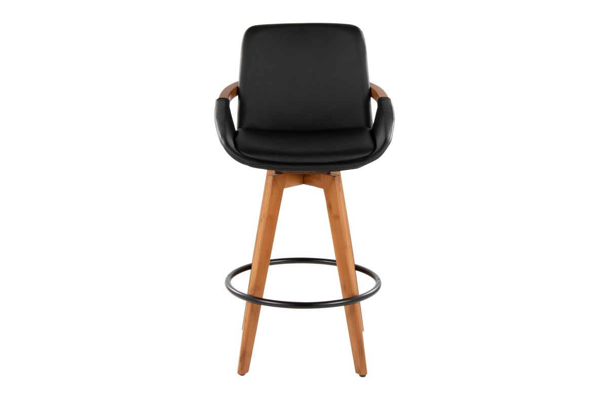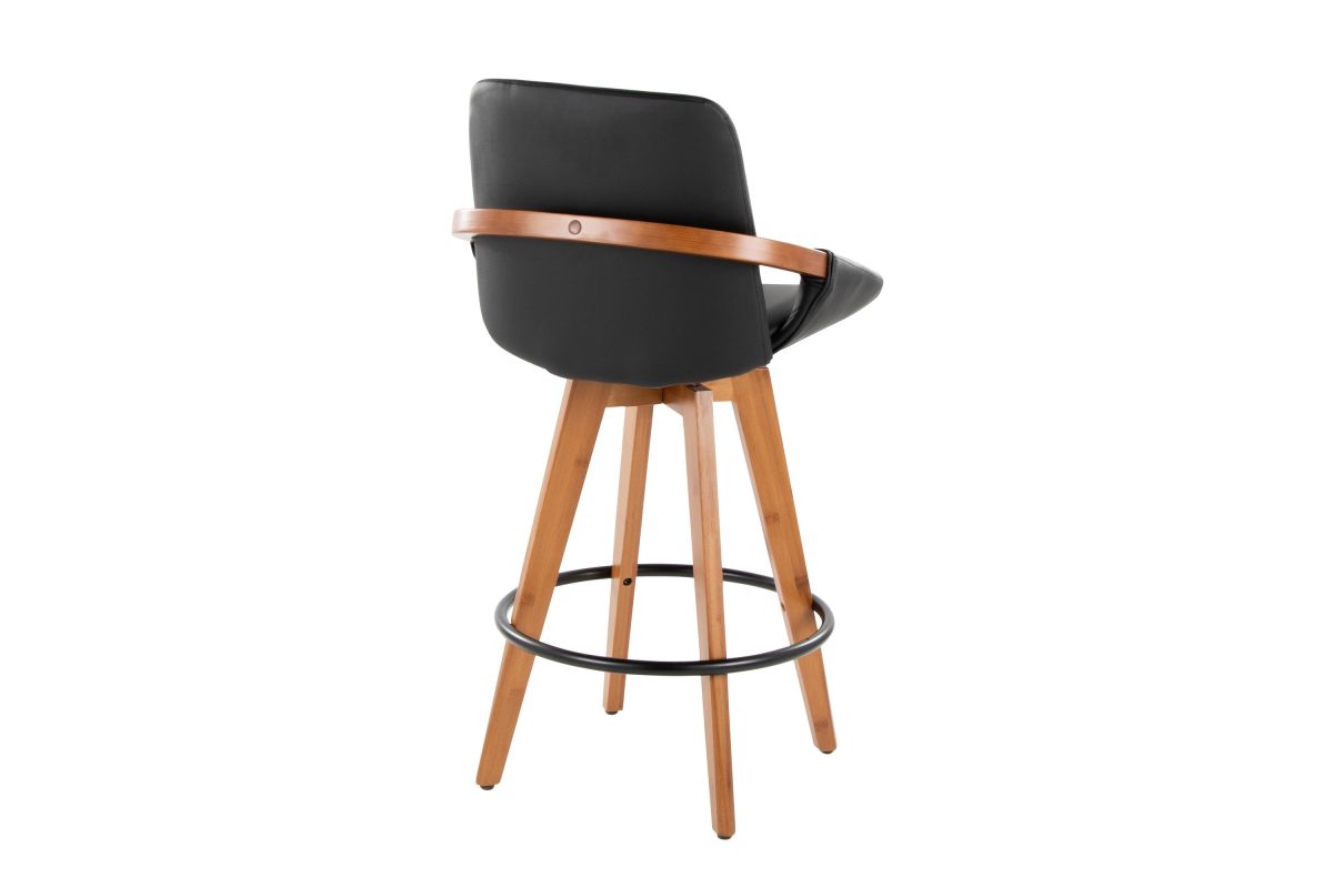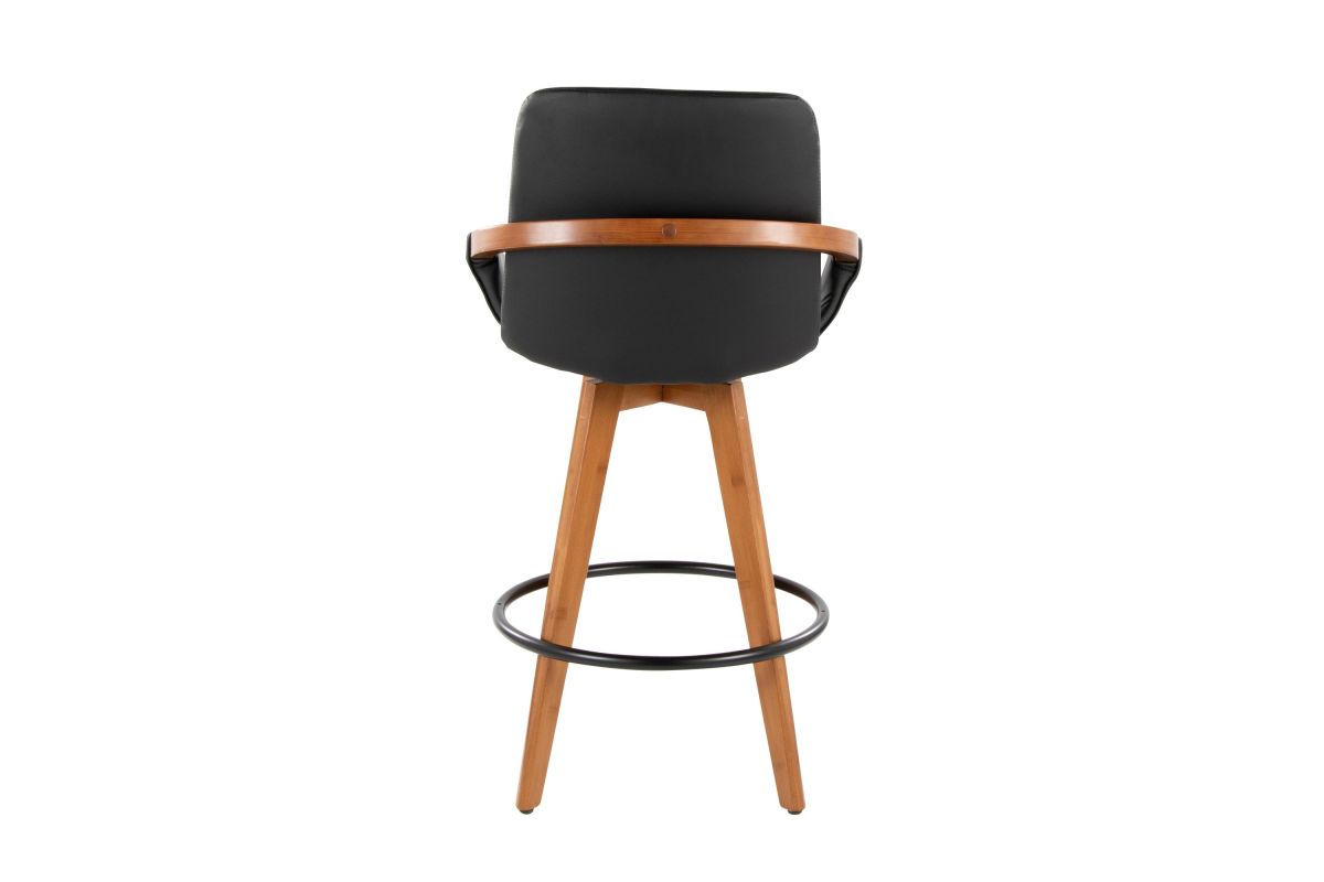Mid-Century inspired, the Cosmo Counter Stool by LumiSource combines style and comfort! A faux leather seat is accented by stylish walnut wood armrest and legs, with smooth swivel capability. Available in a variety of color combinations, choose the one that fits your space the best.