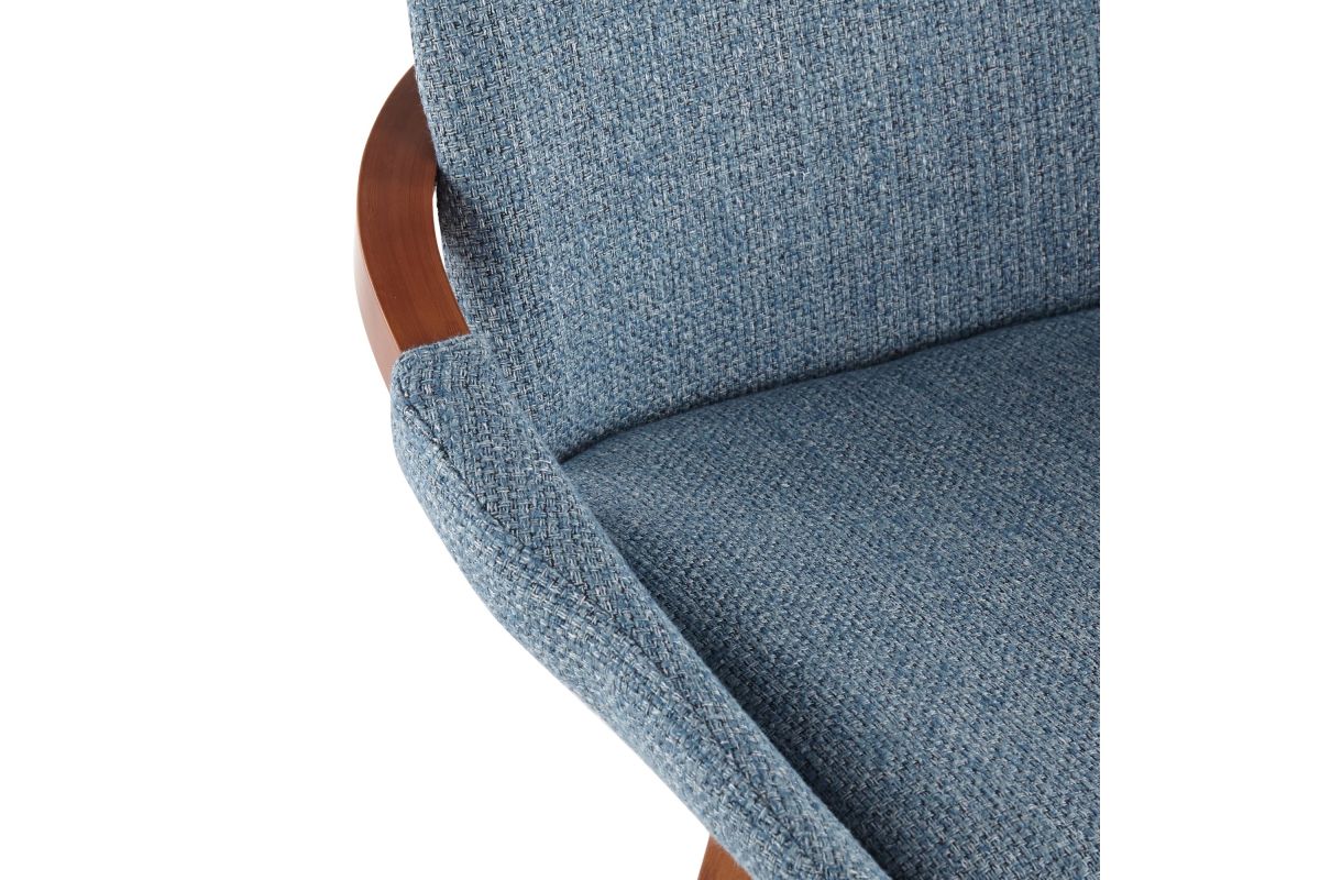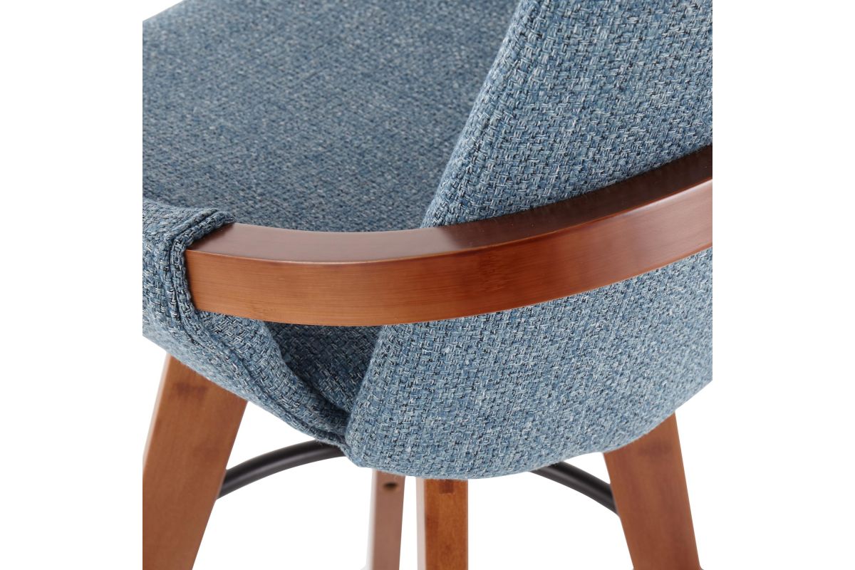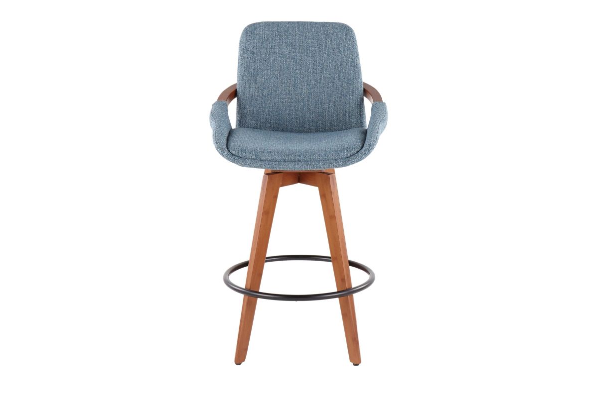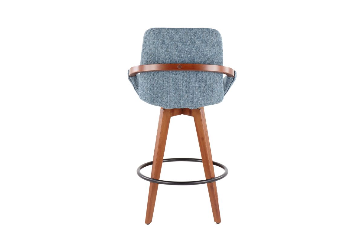 Mid-Century inspired, the Cosmo Counter Stool by LumiSource combines style and comfort! A fabric seat is accented by stylish walnut wood armrest and legs, with smooth swivel capability. Available in a variety of color combinations, choose the one that fits your space the best.