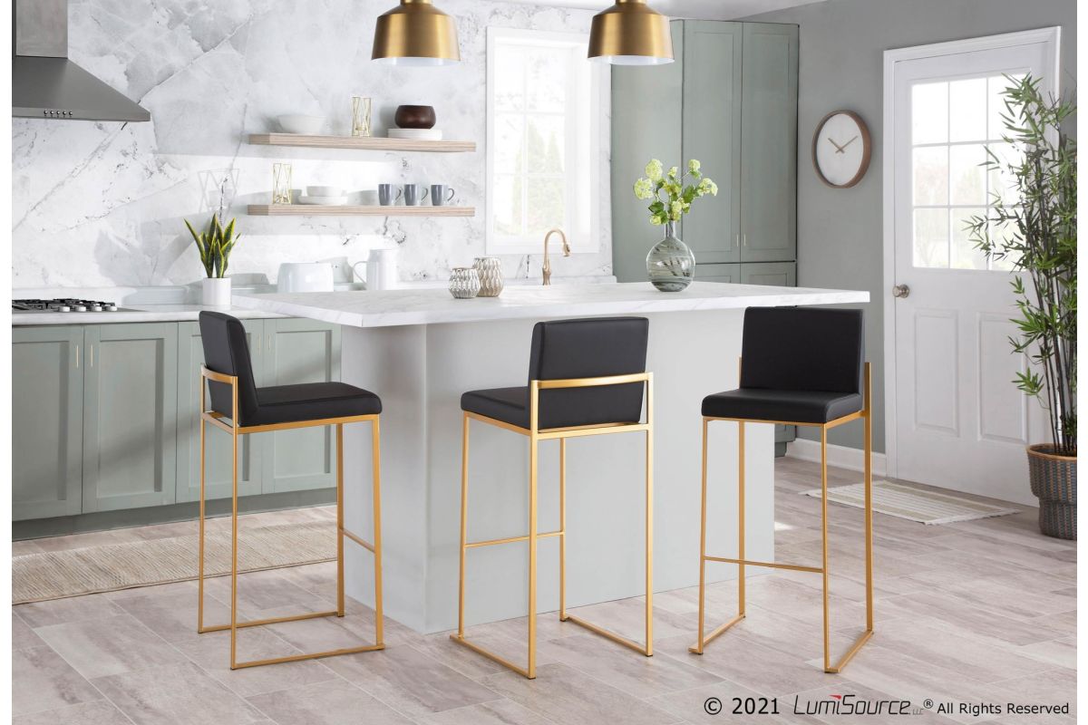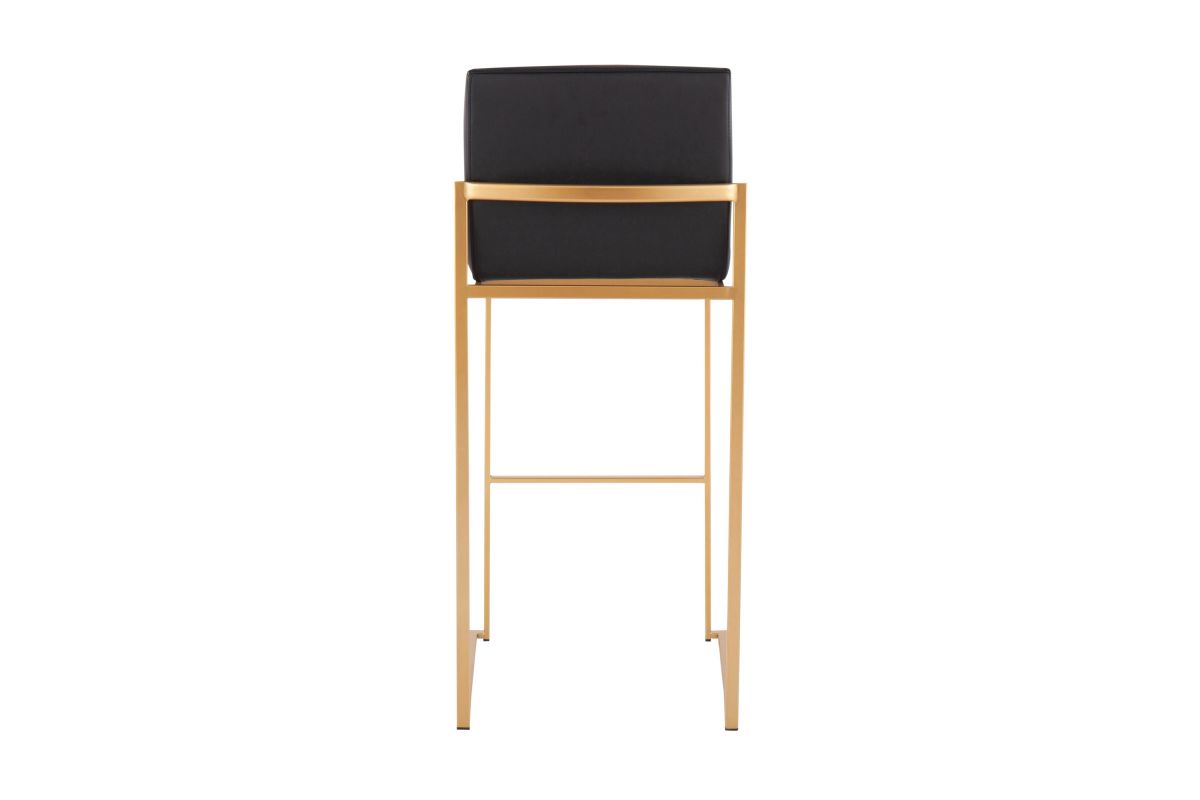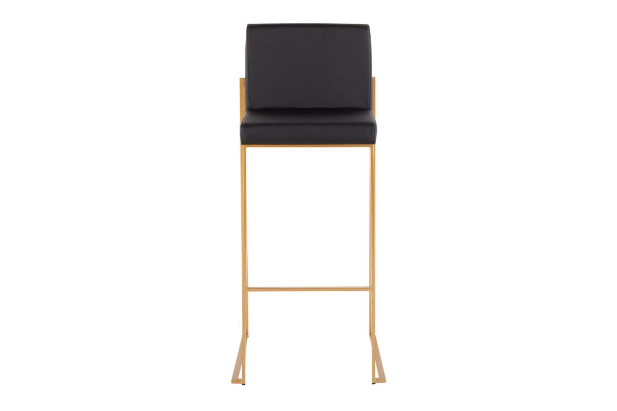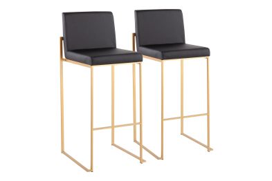 Modern elegance at its finest, the Fuji High Back Bar Stool features an extra-wide (and extra comfortable) upholstered seat, a high padded backrest, and a stylish metal frame. The perfect contemporary bar stool, the Fuji is available in a stainless steel or gold metal frame and comes in a variety of sleek upholstery colors.