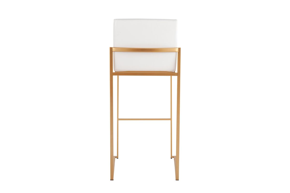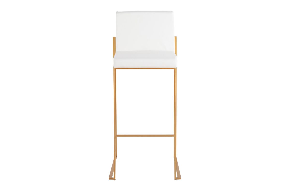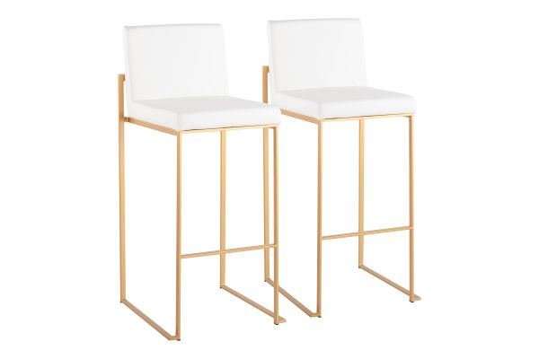Modern elegance at its finest, the Fuji High Back Bar Stool features an extra-wide (and extra comfortable) upholstered seat, a high padded backrest, and a stylish metal frame. The perfect contemporary bar stool, the Fuji is available in a stainless steel or gold metal frame and comes in a variety of sleek upholstery colors.