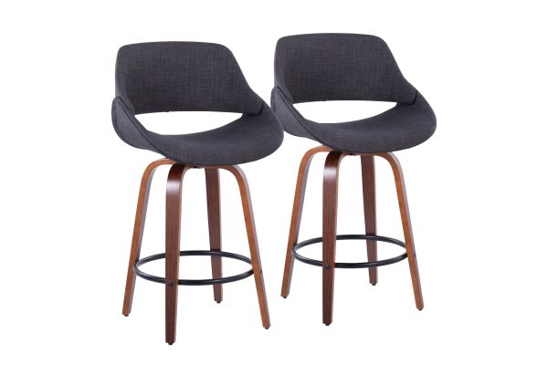 The wide and welcoming seat of the LumiSource Fabrico Counter Stool beckons one to sit and relax. A curved back and contoured upholstered seat is accented by flared walnut wood swivel legs that add to the stylish yet comfortable design. Available in a variety of upholstery colors, choose the one that suits your space best.