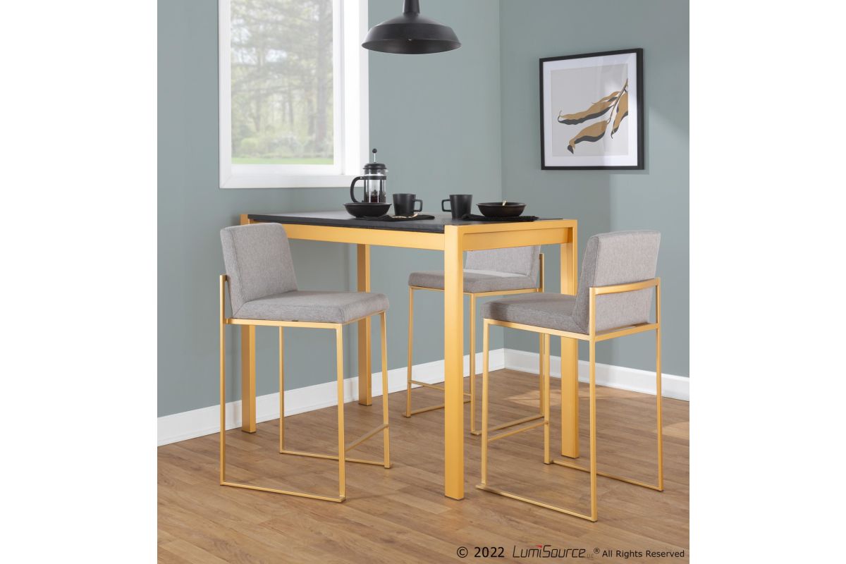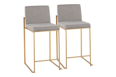 Modern elegance at its finest, the Fuji High Back Counter Stool by LumiSource features an extra-wide (and extra comfortable) upholstered seat, a high padded backrest, and a stylish metal frame. The perfect contemporary counter stool, the Fuji is available in a stainless steel, gold, or black metal frame and comes in a variety of sleek upholstery colors.
