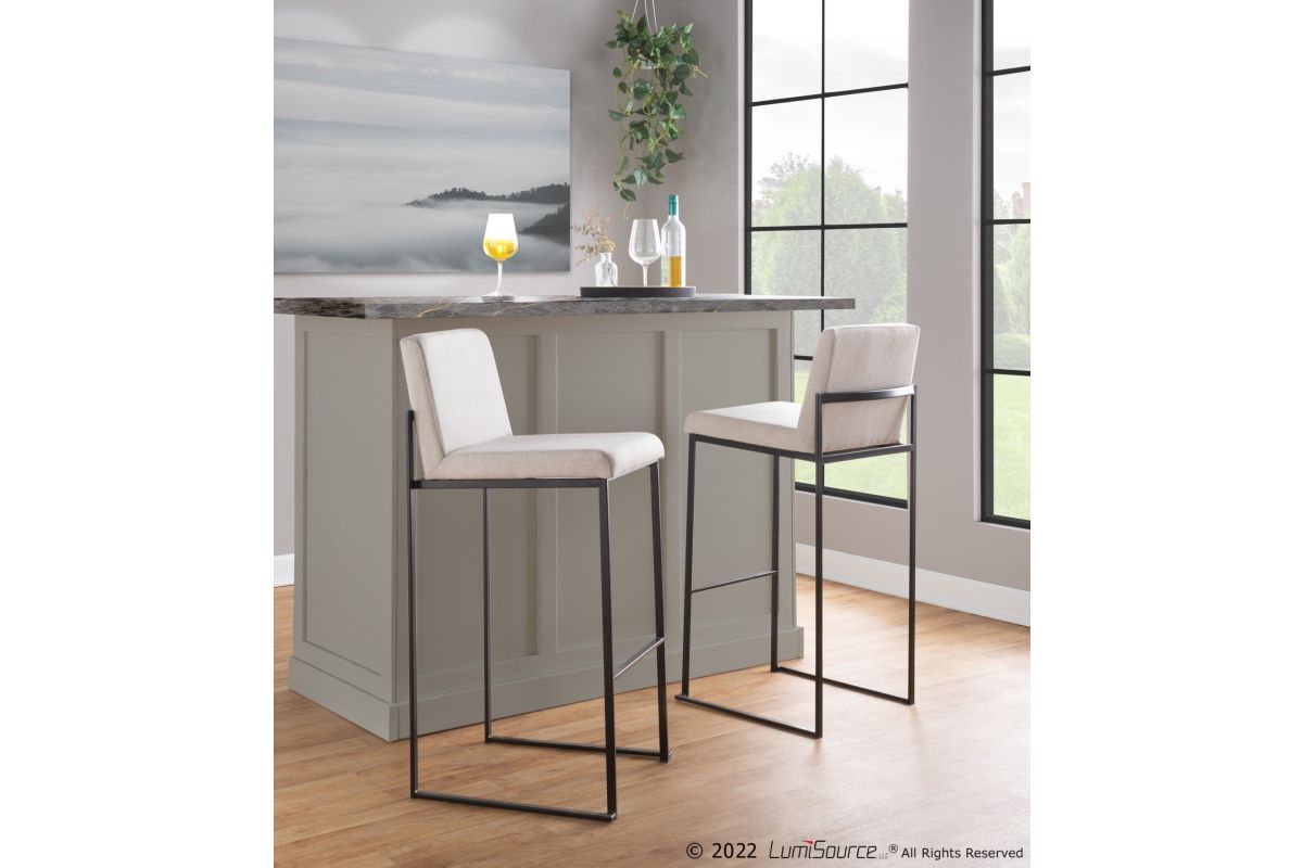 Modern elegance at its finest, the Fuji High Back Bar Stool by LumiSource features an extra-wide (and extra comfortable) upholstered seat, a high padded backrest, and a stylish metal frame. The perfect contemporary bar stool, the Fuji is available in a stainless steel, gold, or black metal frame and comes in a variety of sleek upholstery colors.
