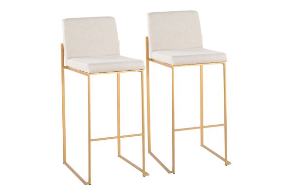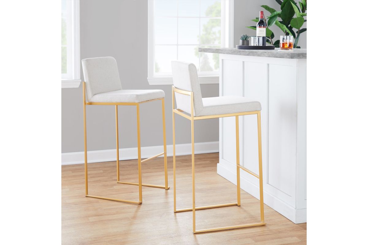 Modern elegance at its finest, the Fuji High Back Bar Stool by LumiSource features an extra-wide (and extra comfortable) upholstered seat, a high padded backrest, and a stylish metal frame. The perfect contemporary bar stool, the Fuji is available in a stainless steel, gold, or black metal frame and comes in a variety of sleek upholstery colors.