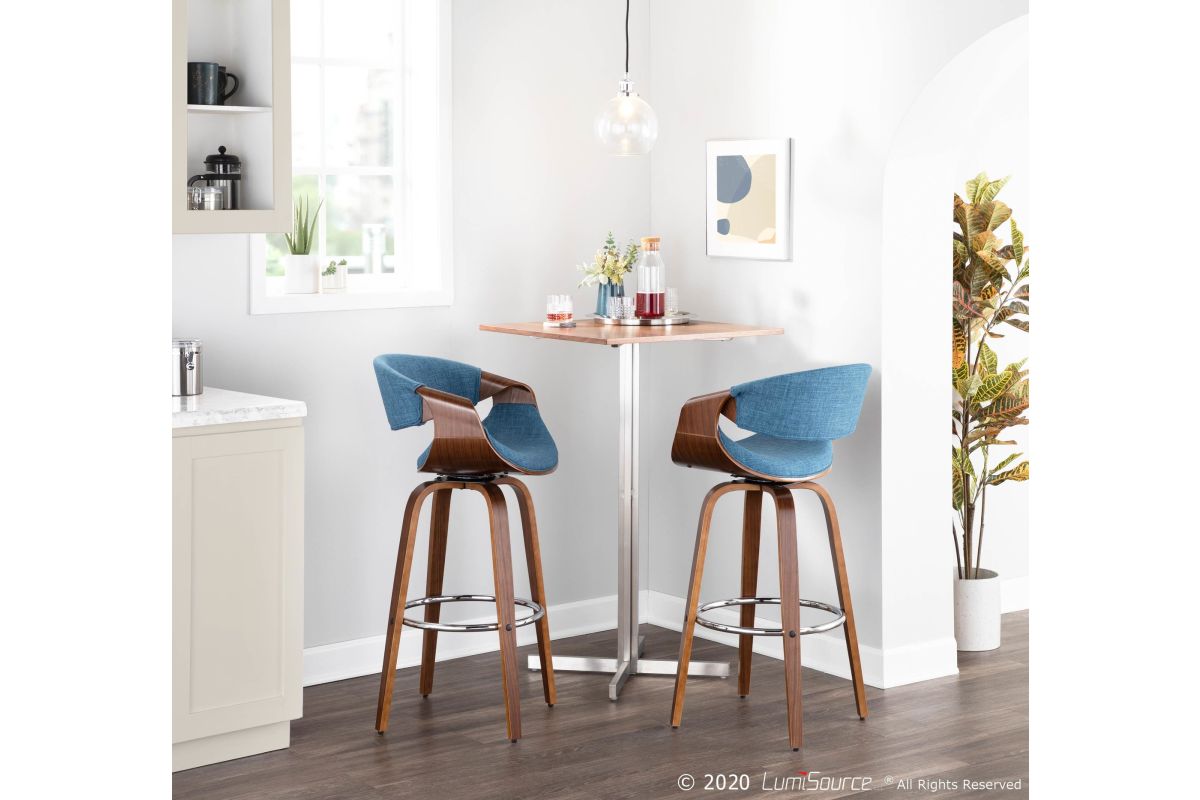 With a curvaceous dose of Mid-Century style, this unique design will look great at your bar area. Featuring a walnut finished stationary wood frame, luxurious woven fabric upholstery, swivel seat, and stylish armrests. The Curvini is available in various finishes, choose the color that fits your space the best.