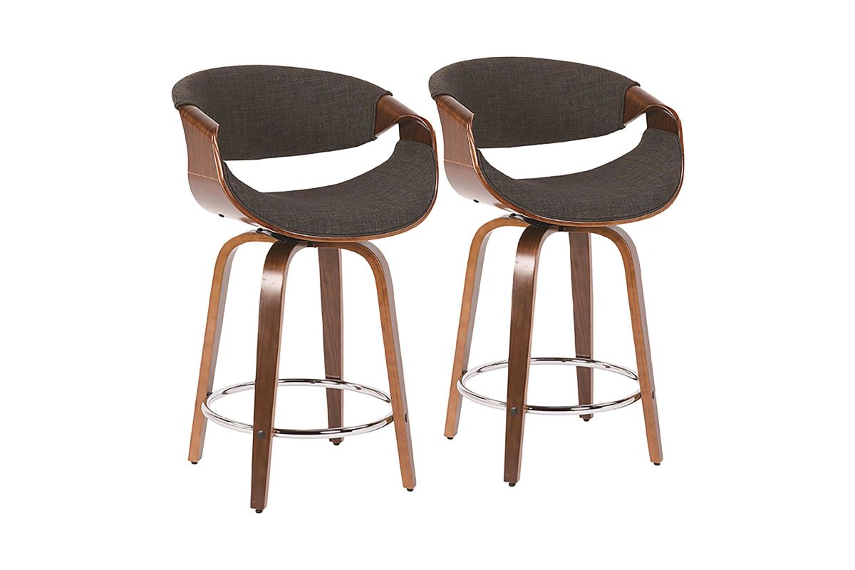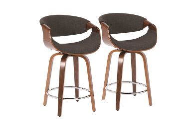 With a curvaceous dose of Mid-Century style, this unique design will look great at your bar area. Featuring a walnut finished stationary wood frame, luxurious woven fabric upholstery, swivel seat, and stylish armrests. The Curvini is available in various finishes, choose the color that fits your space the best.
