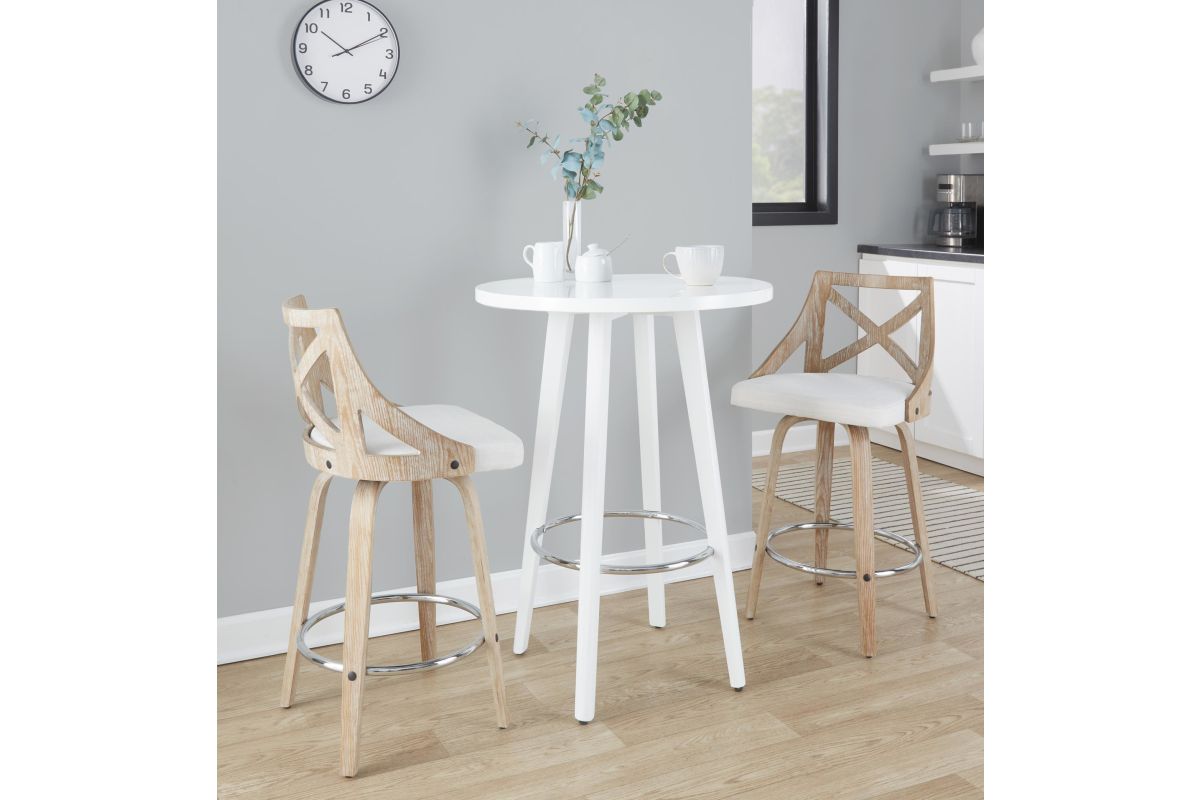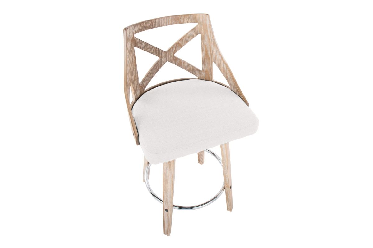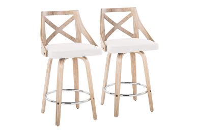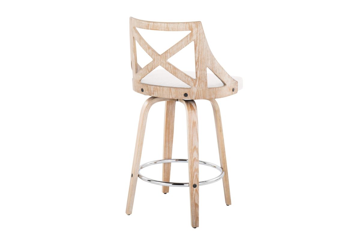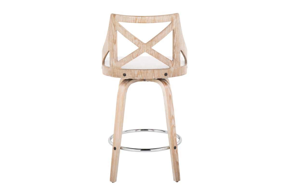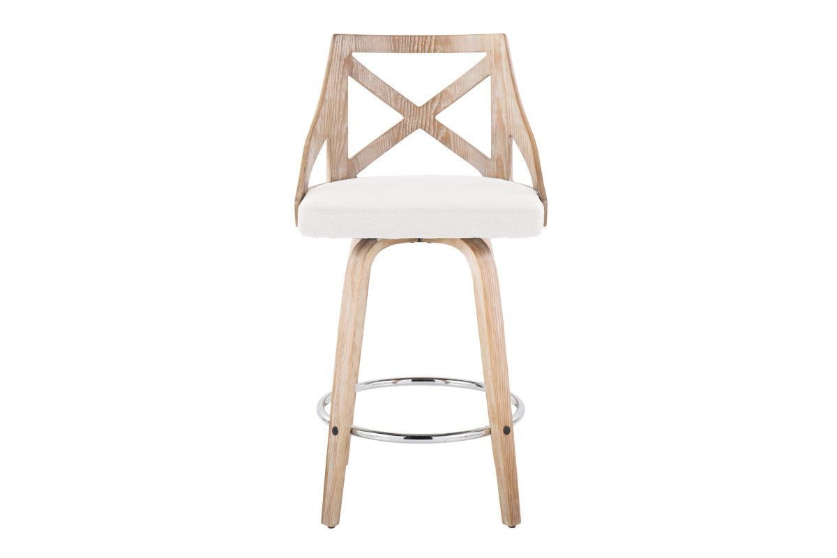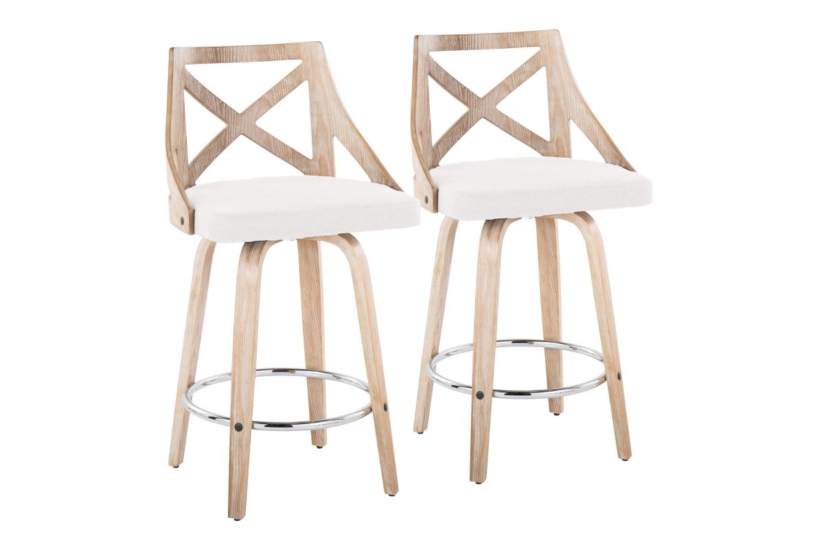 Spruce up your dining area with the Charlotte Fixed-Height Counter Stool by LumiSource. With elegant styling, the backrest shows off an X-shaped accent. Featuring white wash wood, fabric upholstery, and a swivel seat, the Charlotte Counter Stool beautifully straddles the line between traditional and farmhouse styles.